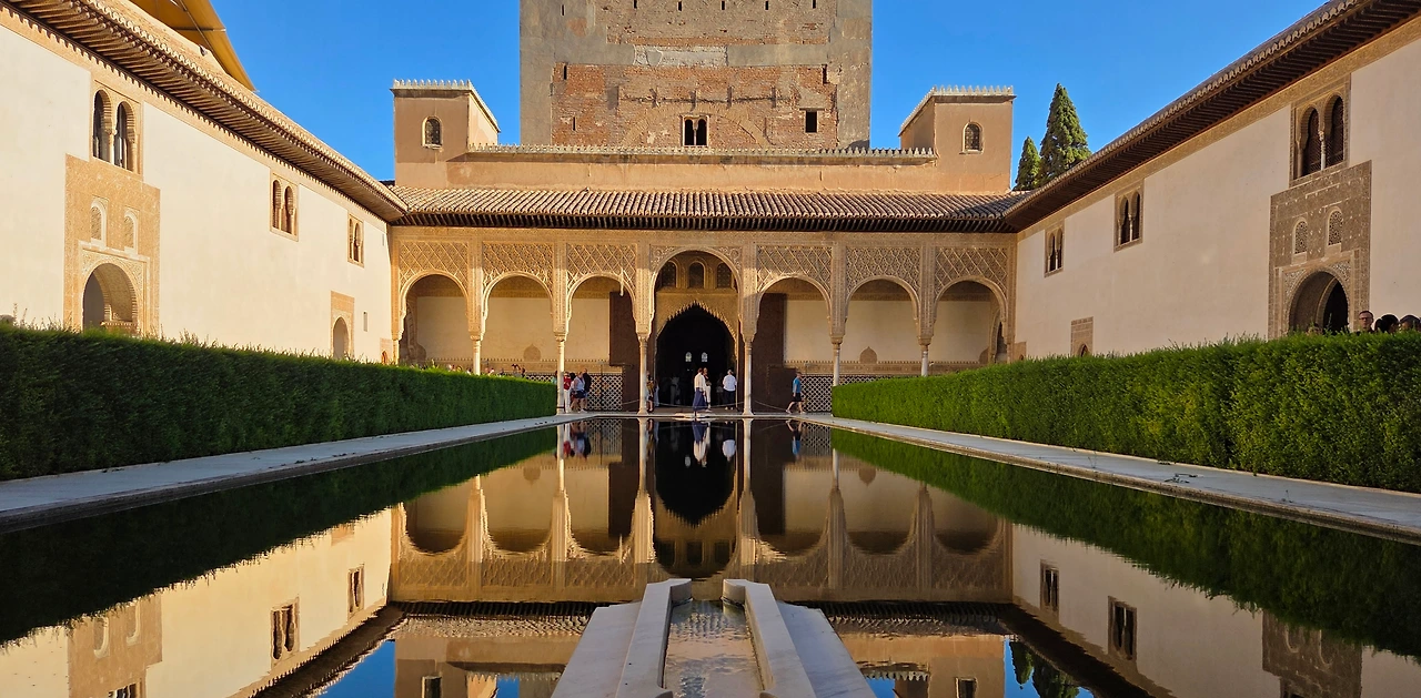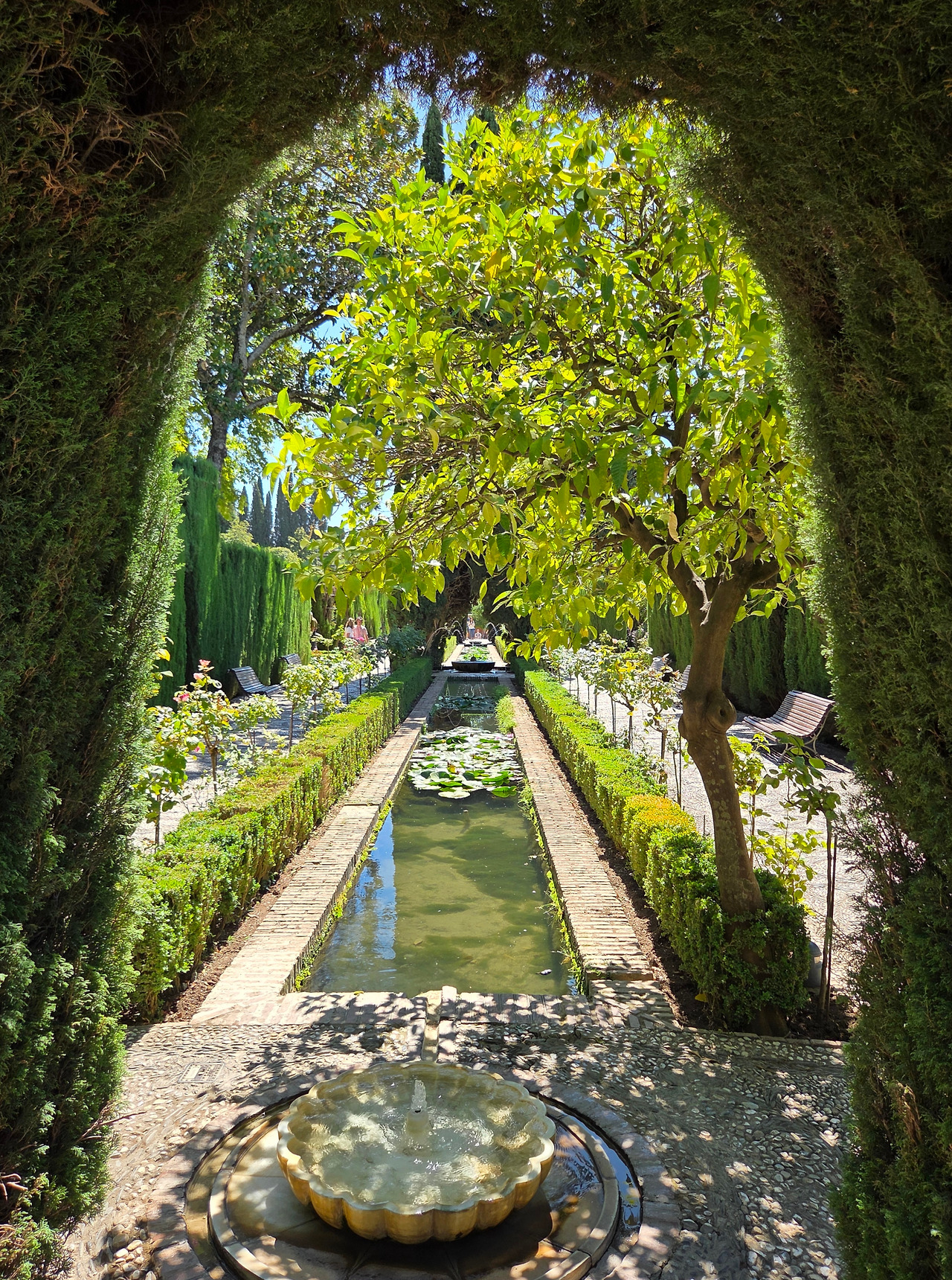 알함브라 궁전의 백미는 단연 오렌지 나무들이 늘어선 아라야네스 정원(Patio de los Arrayanes)이었다. 맑게 갠 하늘과 궁전 건물이 연못 위에 완벽하게 반사되면서 마치 공간이 두 배로 확장된 것 같았다. 그리고 정원의 한가운데에 있는 작은 분수에서 연못으로 물이 흘러가서 잔잔한 물결을 만들고 있었다.