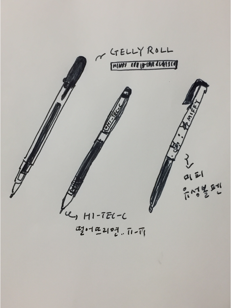 색감은 쨍하지만 번지는 걸 싫어했던 나는 파일롯 하이테크 펜을 선호했다. 펜 이름처럼 고도의 기술이라도 들어간 건지 한 자루에 이천 원정도였던 걸로 기억한다. 용돈 털어 살 만한 가치가 있었지만 한번 떨어뜨리기라도 하면 잉크가 나오는 펜촉이 푹 들어가 못 쓰게 된다. 그래서 나는 하이테크 펜은 잘 빌려 쓰지 않았다.