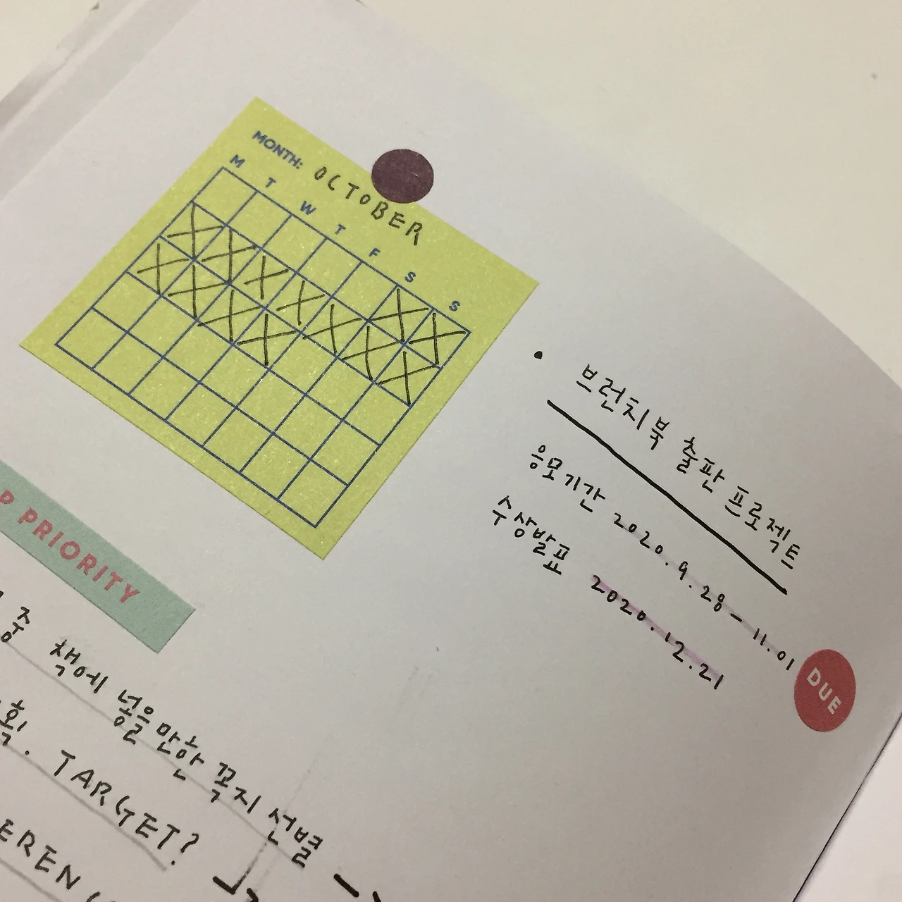 최근에는 브런치 출판 프로젝트를 준비하면서 노트를 한 권 마련했다. 매일 글을 쓰기 위한 해빗 트래커를 만들고 향후 어떤 내용의 글을 몇 편 더 적어내려갈 것인지, 어떤 키워드와 컨셉을 가지고 책을 완성할 것인지 각종 아이디어를 적었다. 비록 수상작으로 선정되지 못한다고 해도 이 노트는 책 한 권의 기획 과정이 담긴 나만의 자산이 될 것이라는 확신이 든다.
