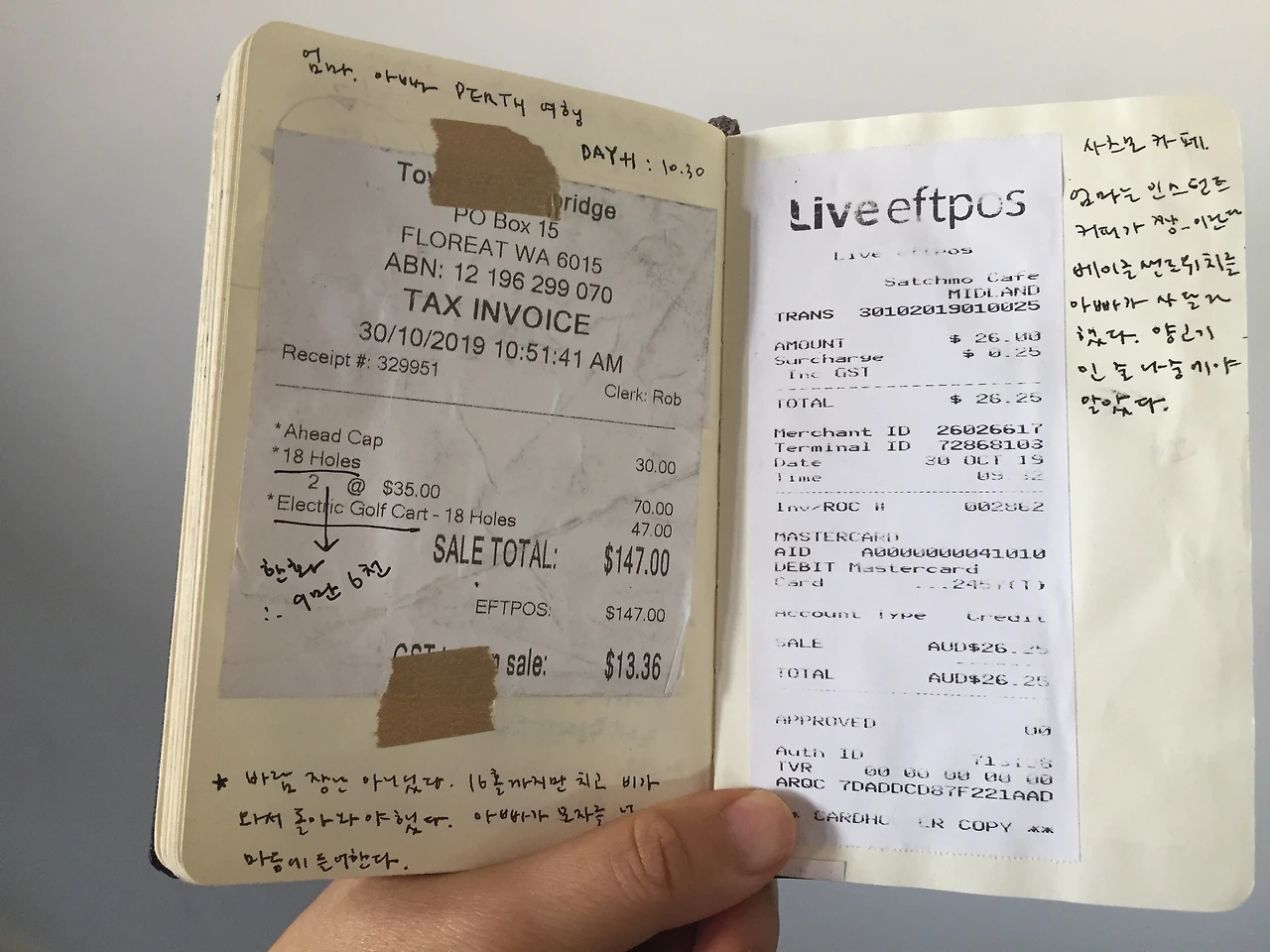 11월에는 부모님이 호주에 오셔서 함께 여행했는데요. 이렇게 영수증을 붙여서 부모님과 어디에 갔는지 무얼 했는지를 써 보기도 했습니다.