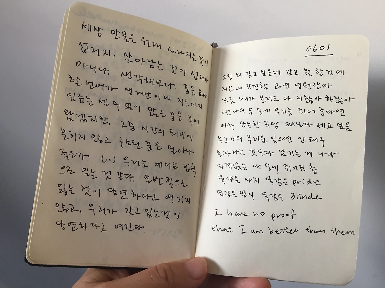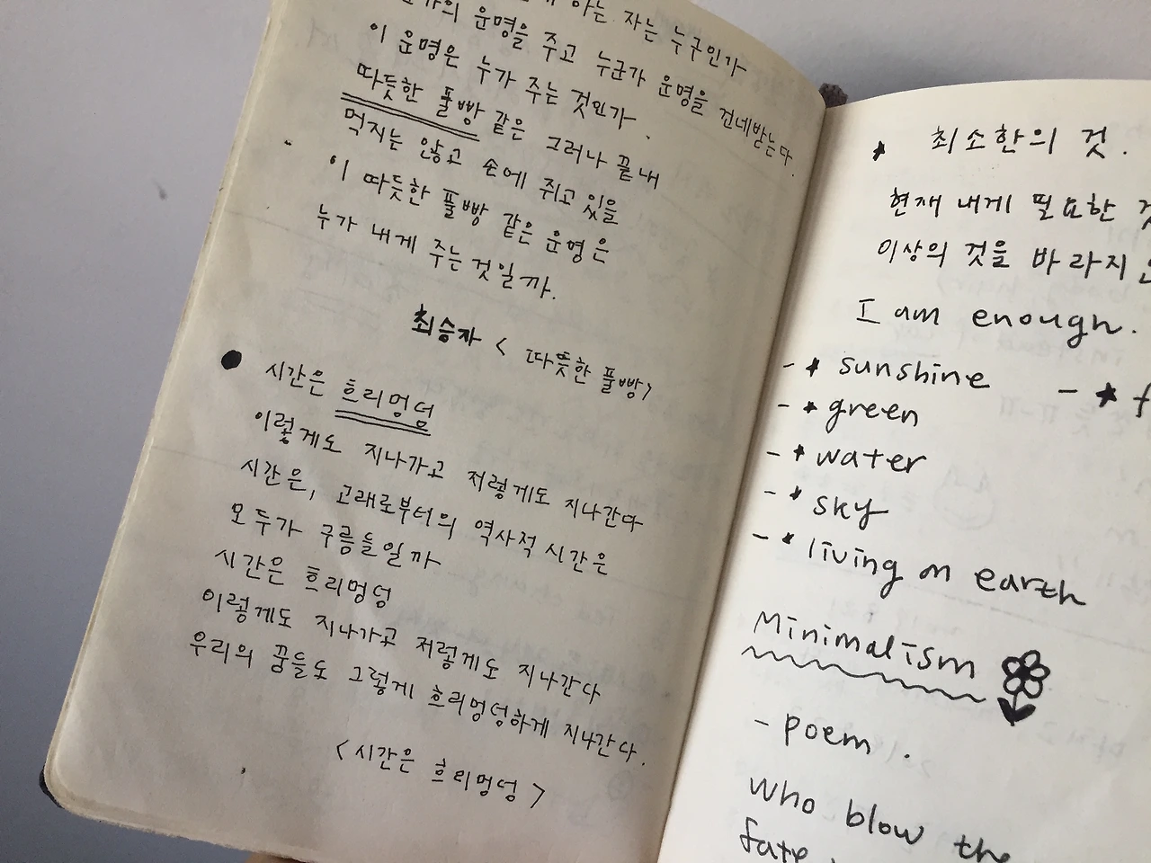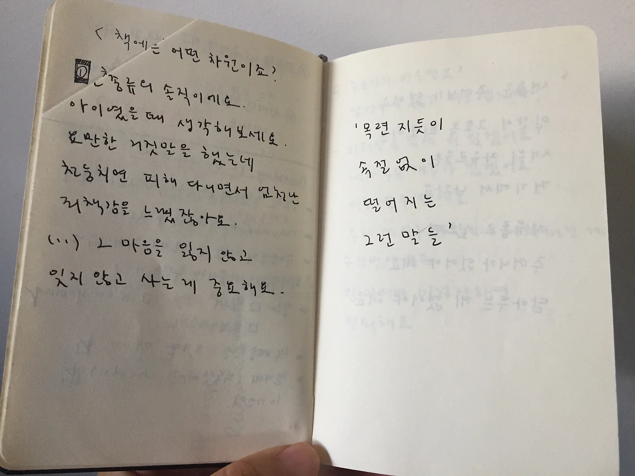 저는 시 필사도 참 좋아해요. 언어 다루는 기술로는 정말 시인들이 최고라고 생각해요.