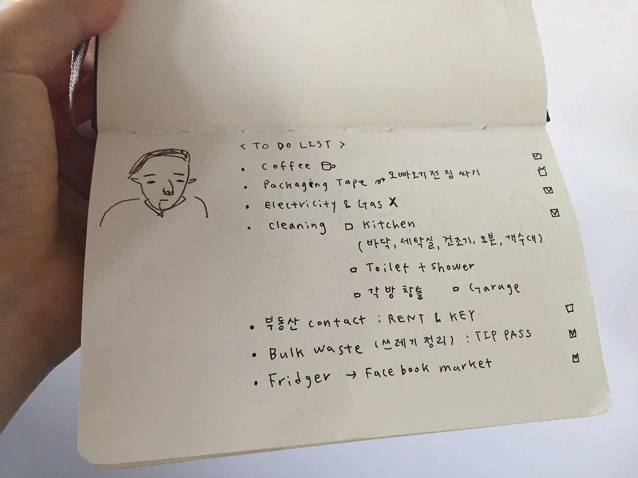 중간중간 그날 해야 할 To Do List를 만들기도 해요. 저는 워낙 제 마음대로 노트와 다이어리를 쓰기 때문에 형식이 있는 것보다는 플레인 노트를 선호하는 편이에요. 가로로도 썼다가 세로로 쓰기도 해요. 이사할 때 할 일이 너무 많아서 저렇게 하나씩 체크를 하며 준비했었네요. 아무리 힘들고 버거운 일도 기록과 함께 하면 한결 쉬워지는 마법! 다음번에는 다른 노트로, 여행 기록을 어떻게 하는지 보여드릴게요 :)