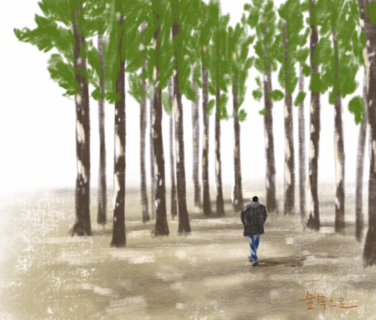 숲속으로.인적이 드문 숲속을 가 본 적이 있나요?아무도 없는 숲속은 평안하면서도 무섭습니다.바람소리가 좋다가도,홀로 계속 있으면생각지 못한 두려움이 생기기도 합니다.고민하던 현실의 걱정은 잠시 덜어두게 되지만 혼자라는 두려움에 오만가지 새로운 걱정이 앞서게 되죠.마음은 잠시도 생각없이 놔두질 않습니다.인간은 걱정하기 위해 태어난 존재인가 봅니다.