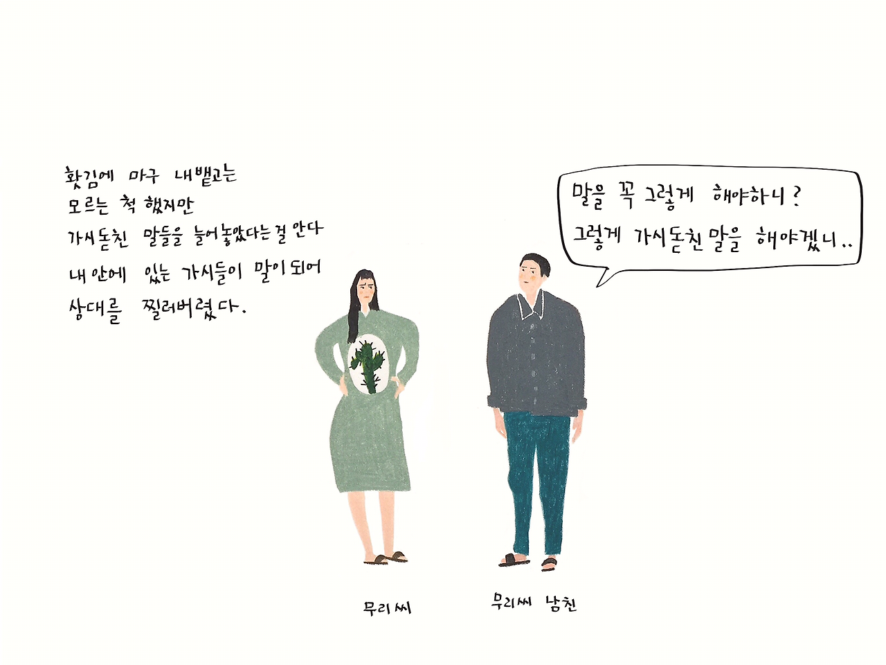 내 마음의 가시가 입을 통해 말로 상대를 찔렀습니다.