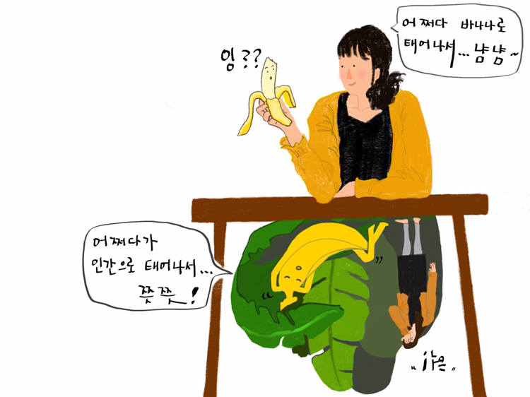바나나는 어쩌면 인간으로 태어나서 아등바등 생각만 많은 것보다 자신이 더 낫다고 생각할지도 모르니까요.