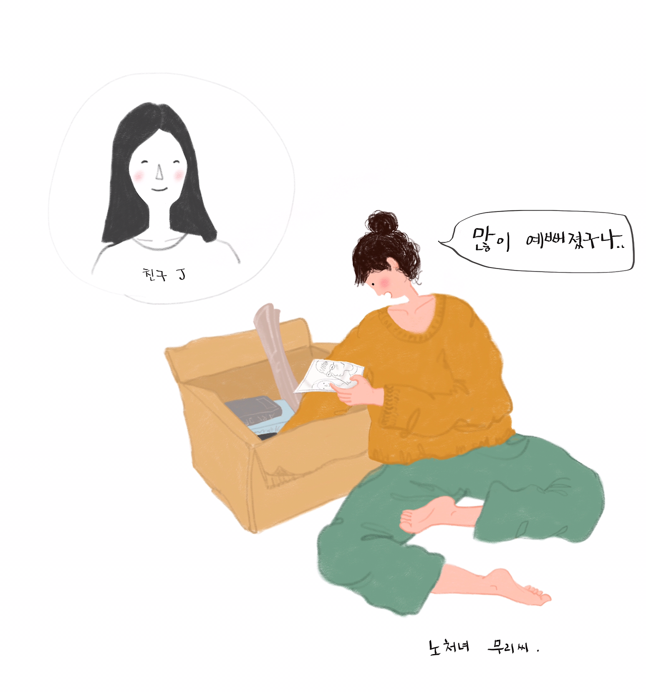 이삿짐을 정리하다 J와 찍은 20대 초반의 사진을 발견하곤 깜짝 놀란 무리씨.