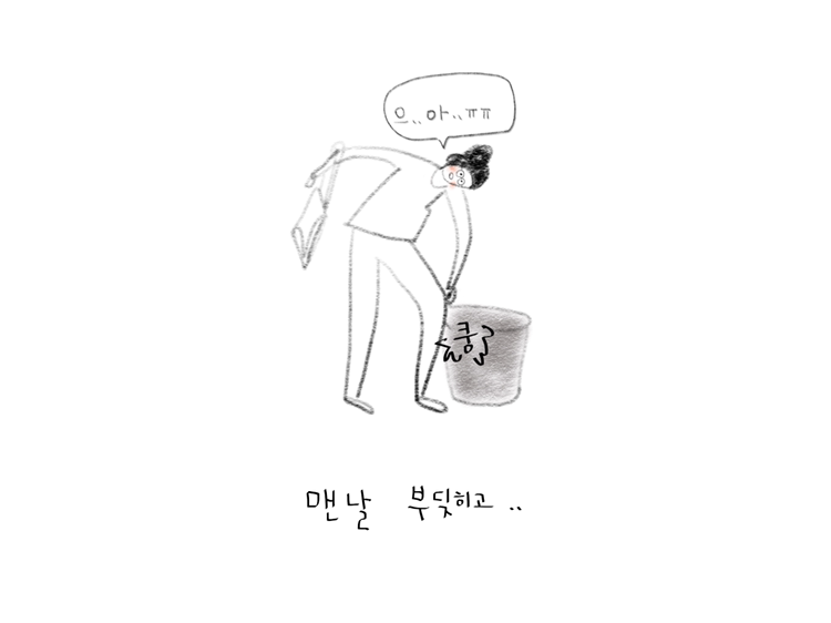 문을 나설 땐 꼭 어딘가 부딪히고 걸리고 먹을 땐 흘리고 장애물이 있어도 없어도 넘어지고...