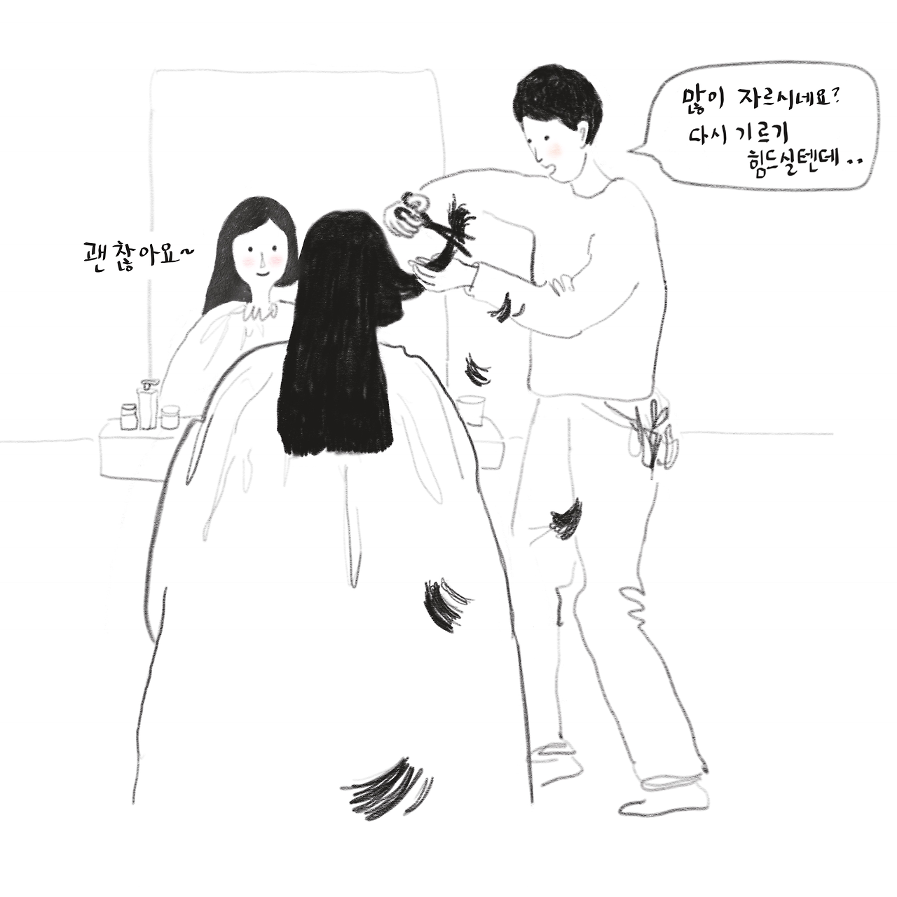 미용사가 걱정스레 물어봅니다.