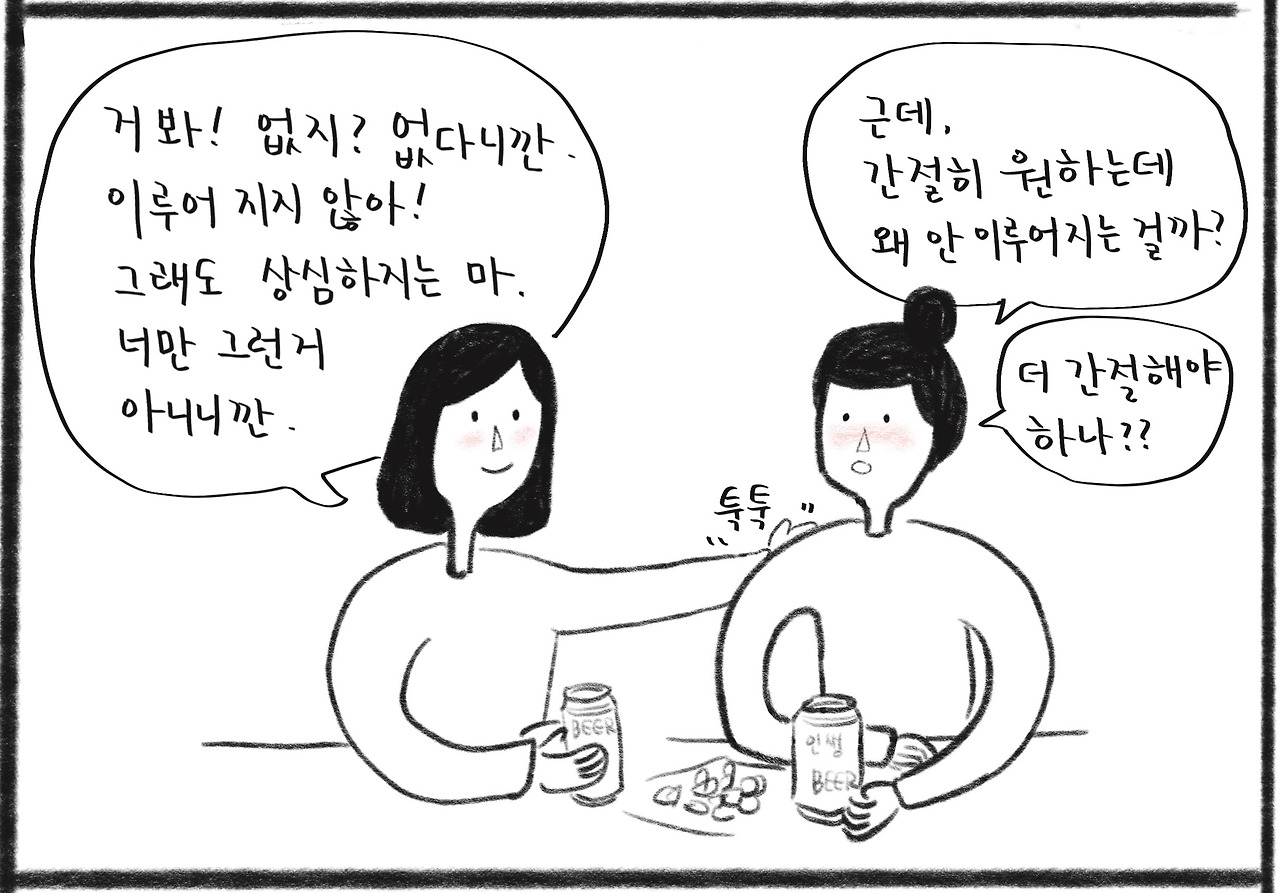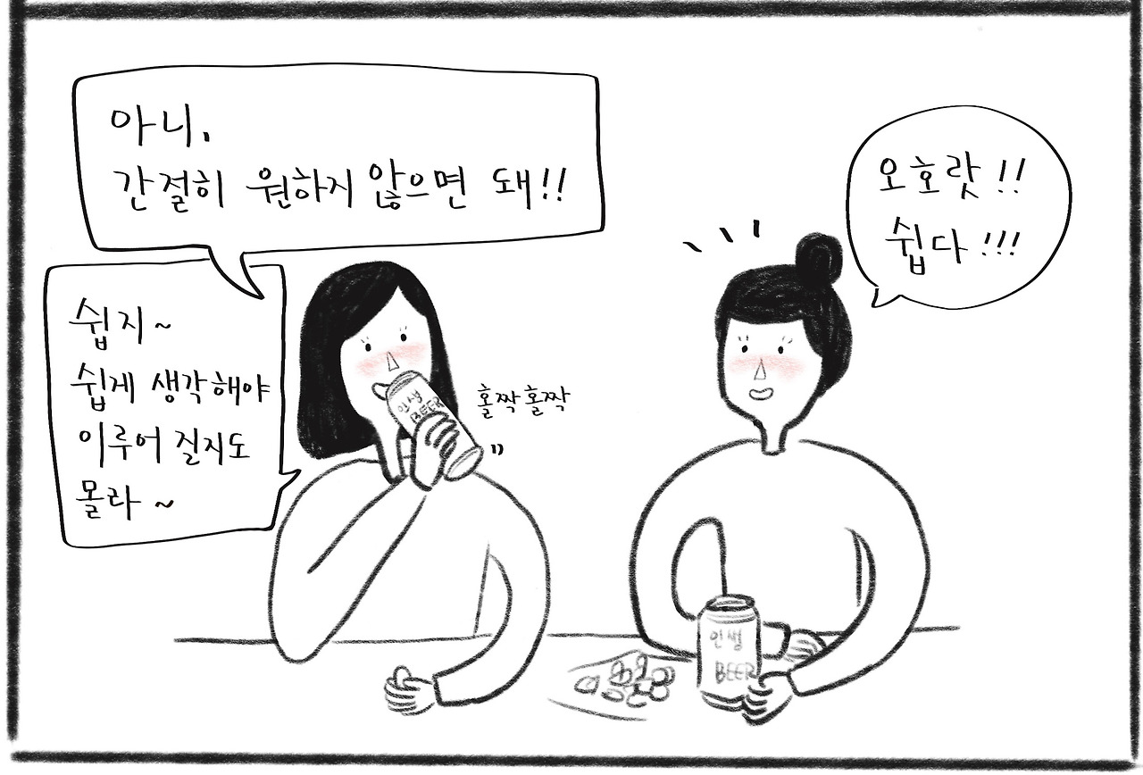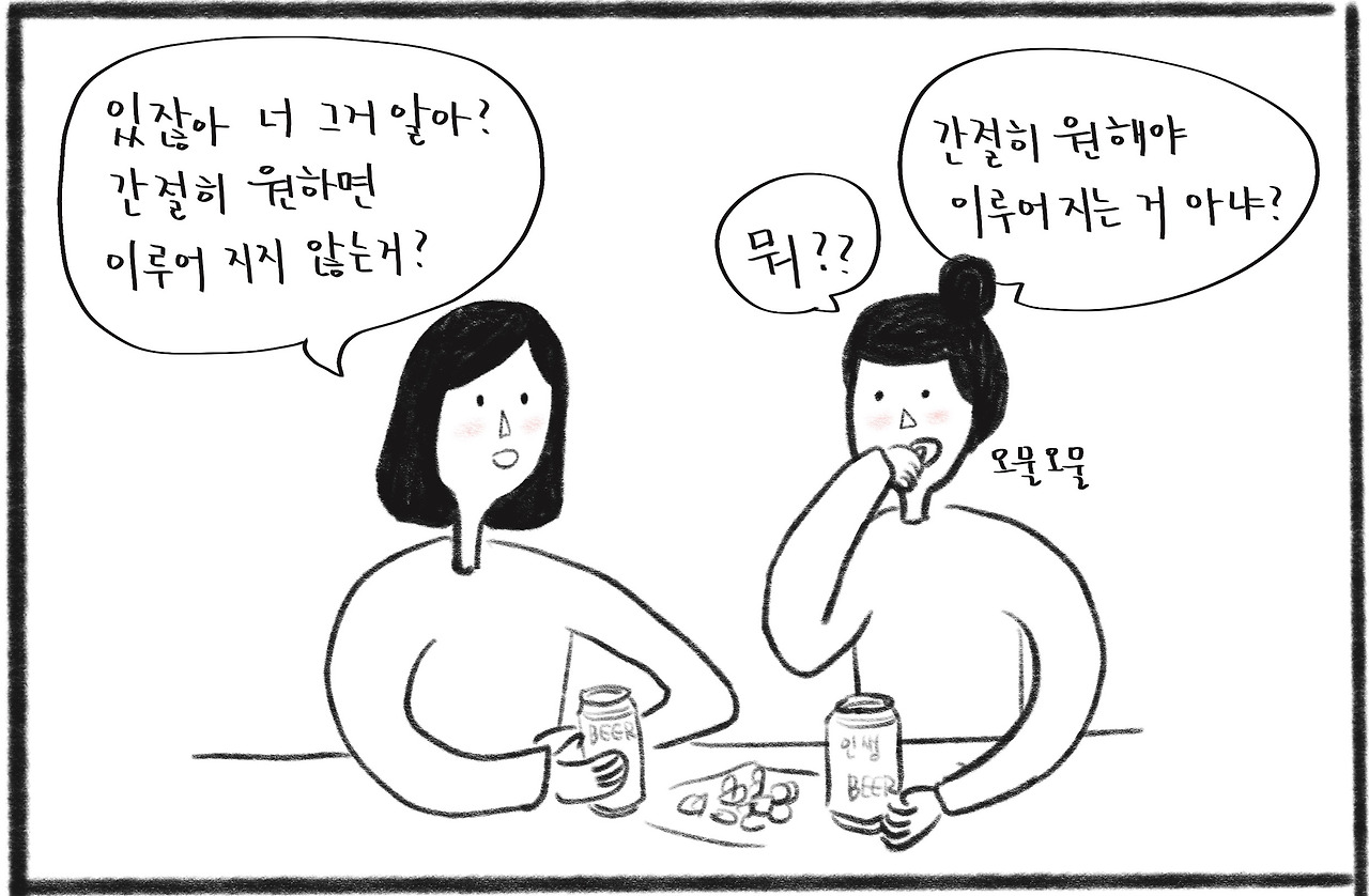 “그래, 간절히 원하지 않아보는 거야! 욕심을 버리고 조급한 마음을 내려놓고! 간절함의 틀을 만들어 놓지 않고 말이야.”