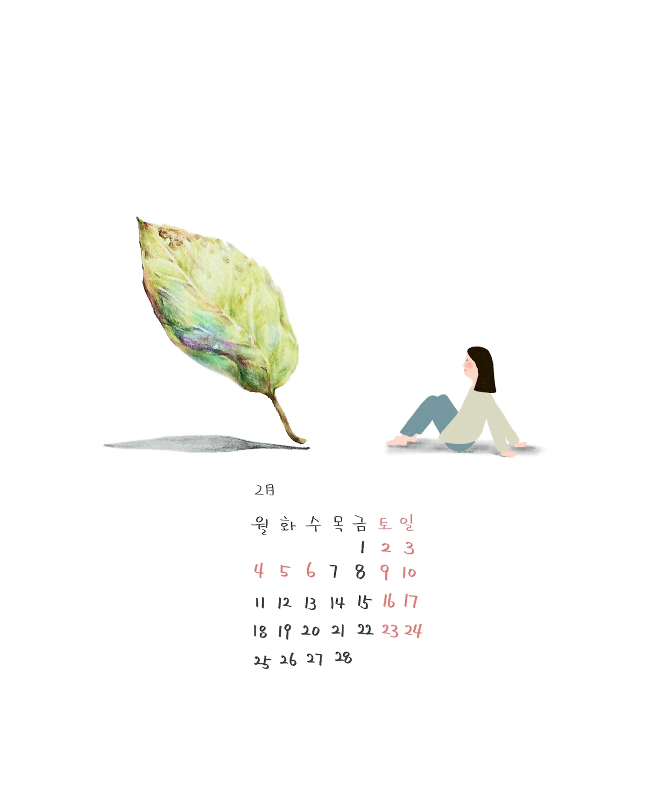 2월 달력이에요~ 필요하신 분 쓰셔요^^