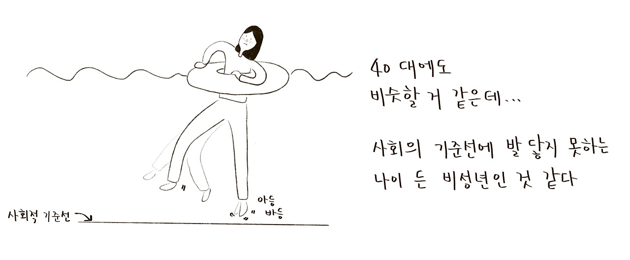 남들이 말하는 사회적 기준선, 그 선에 좀처럼 발이 닿지 못하고 그냥 부유하는 것 같은 기분이 들기도 하고요.