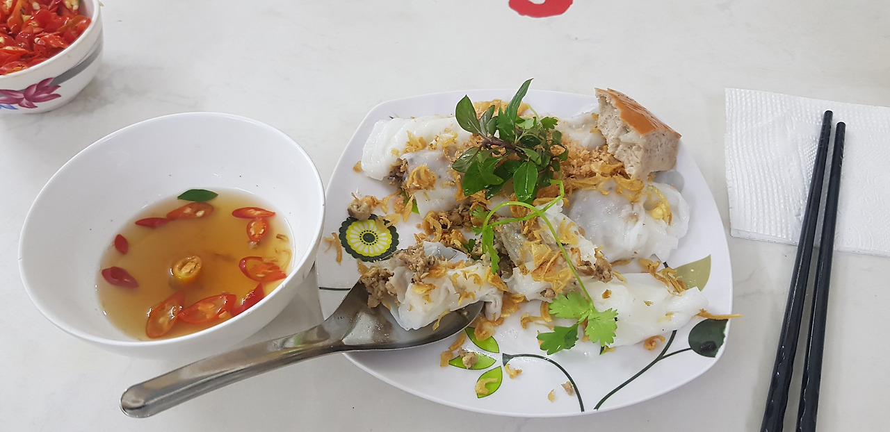 나는 사실 반 꾸온(banh cuon)도 맛있었다. 딱 보면 무슨 맛인지 상상이 가지 않는가? 쌀가루 반죽으로 얇은 피를 부쳐서 말아 느억맘 소스에 찍어 먹는 음식으로, 쫀득 쪽 득한 식감이 매력이다. 하지만 리스트에서 제외된 이유는 느억맘 소스의 젓갈 향과 남편이 싫어하는 떡 같은 식감 때문이다. 추천 식당.