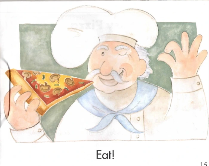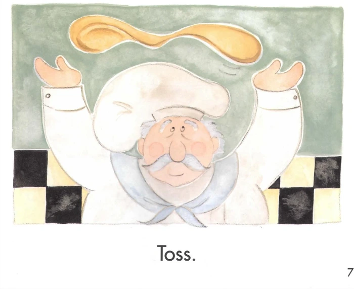 이렇듯 이 책은 하나의 동사로 피자 만드는 과정을 간단하게 보여주는 책입니다.