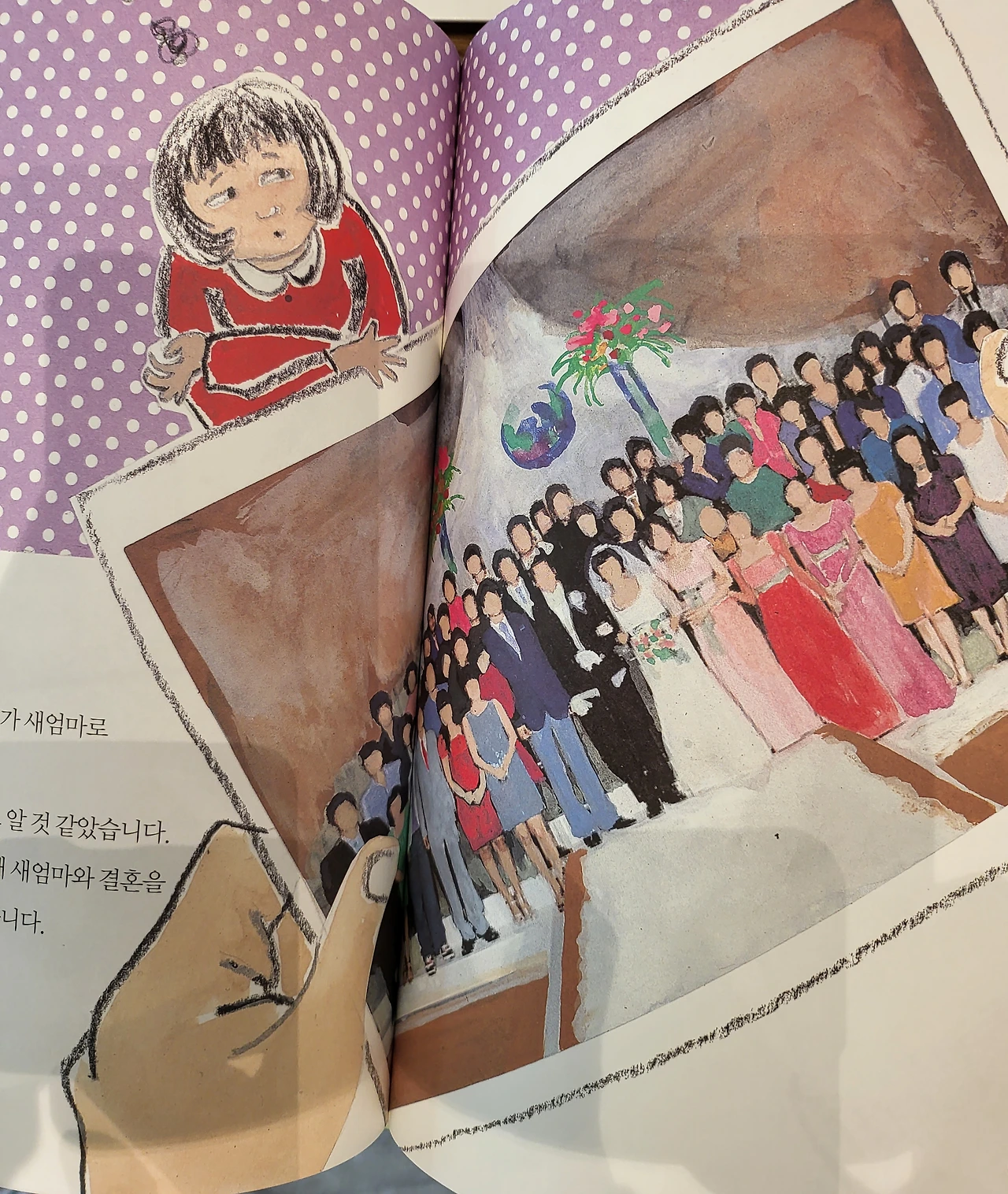 수지는 자신이 참여하지 않는 아빠의 재혼 사진을 보고, 낯선 새 여자와 새 아가를 보고( 아무리 새엄마가 있었으면 했다고 해도) 수지가 기쁘게 맞이할 수 있는가? 내 엄마의 뱃속에서 동생이 태어나도 첫아이가 느끼는 상실감이 크다는 것을 우리는 알고 있다. 적어도 이 동화책의 작가는 인간의 본성을, 어린아이의 심리를 이 정도도 모른단 말인가.