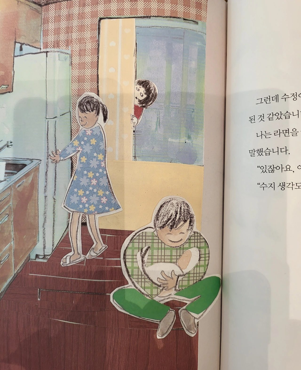 수정이를 달래는 아빠의 모습을 다시 보니 아빠가 아이가 된 것 같았습니다. 나는 라면을 끓이고 있는 새엄마에게 살며시 다가가서 말했습니다.