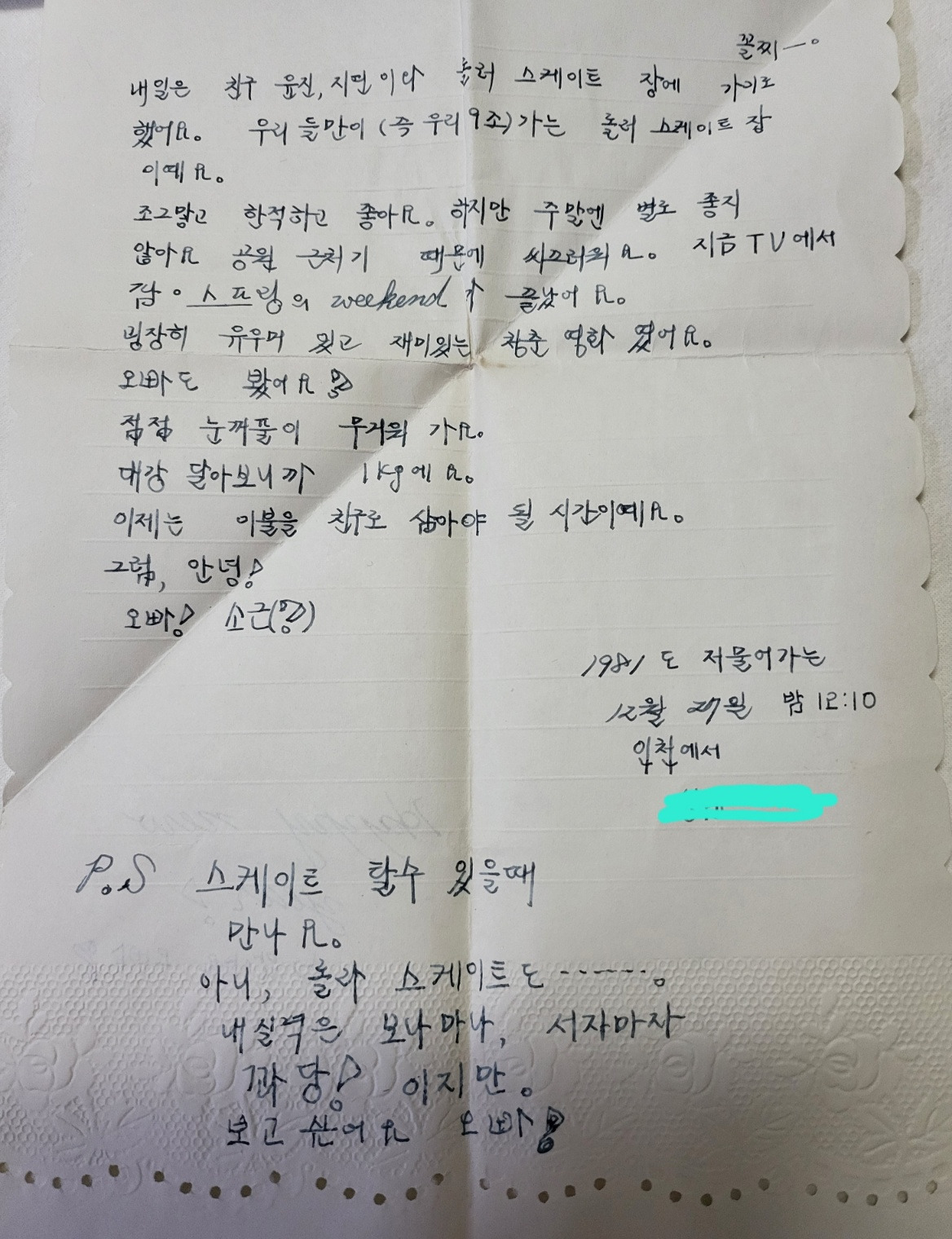 함께 롤러스케이트를 타고 싶어서 얼음이 녹기 전에 보고 싶은 마음. 조용한 스케이트장에서 데이트하고 싶은 마음. 아 그러나 이 오빠는 양다리 문어 다리를 펼치고 계셔서 많이 바쁘셨다. 이 여학생은 나중에라도 알았으려나, 알고 헤어졌으려나.