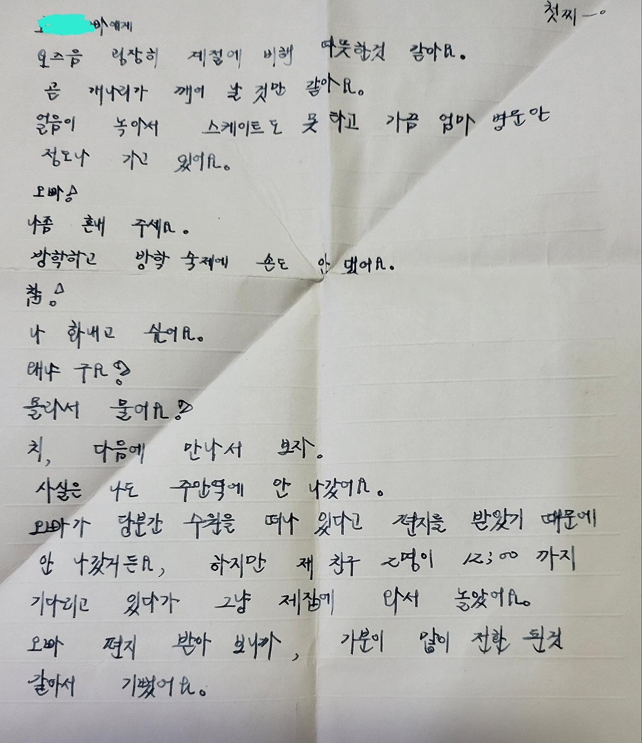 오빠 편지 받아보니까, 기분이 많이 전환된 것