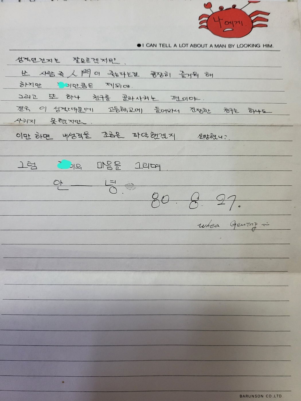 인천은 연고도 없는데 인천여학생들이 어찌 편지를 보내나. 친구가 있었나.단체미팅을했나 헌팅을 다녔나? 아무튼 무지 놀았구나. 그러니 재수 삼수를했지 에혀!■
