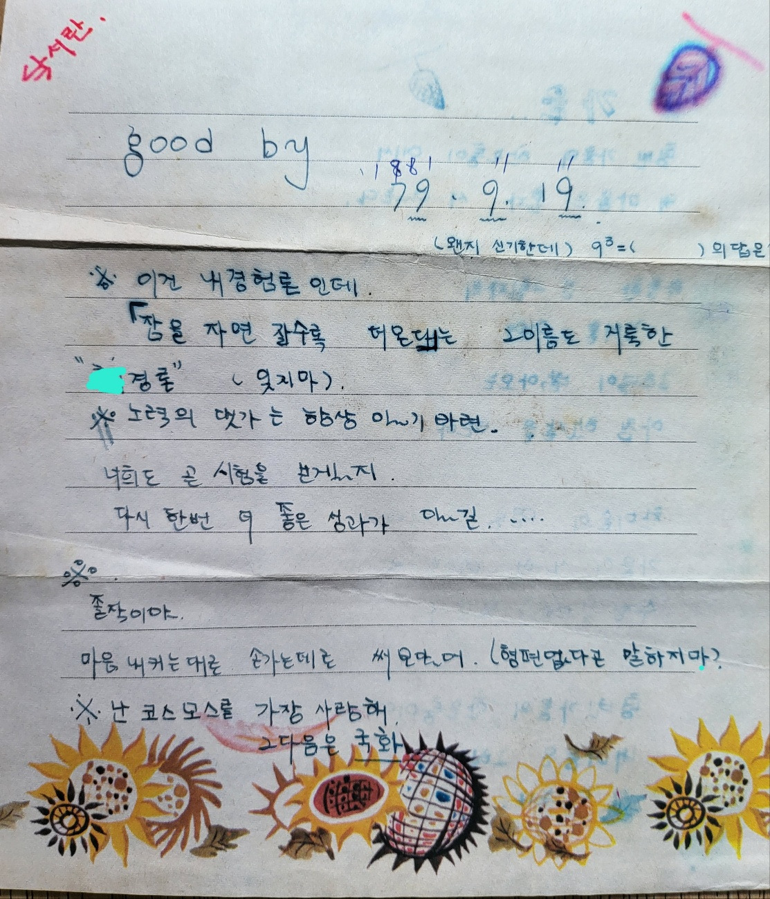 79년 9월과 연말에 쓴 편지다. 9월에는 시를 써 보냈다.