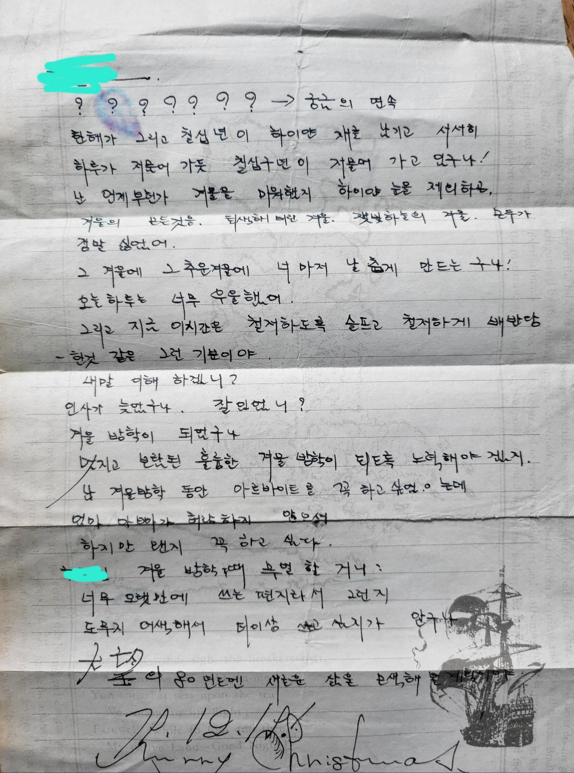 너무 오랜만에 쓰는 편지라서 그런지 도무지 어색해서 더 이상 쓰고 싶지가 않구나