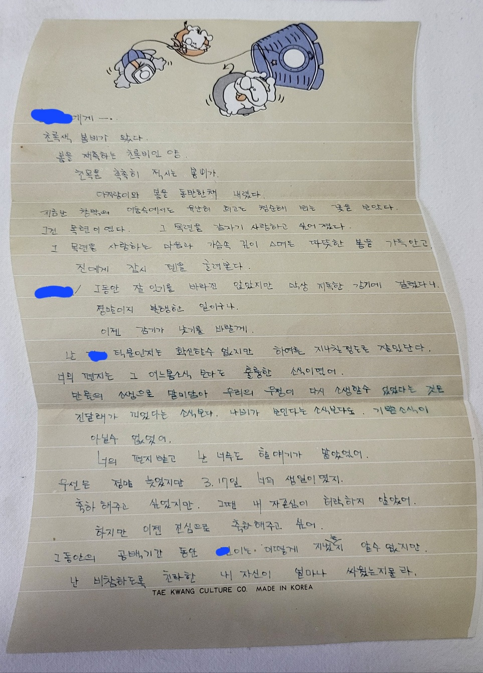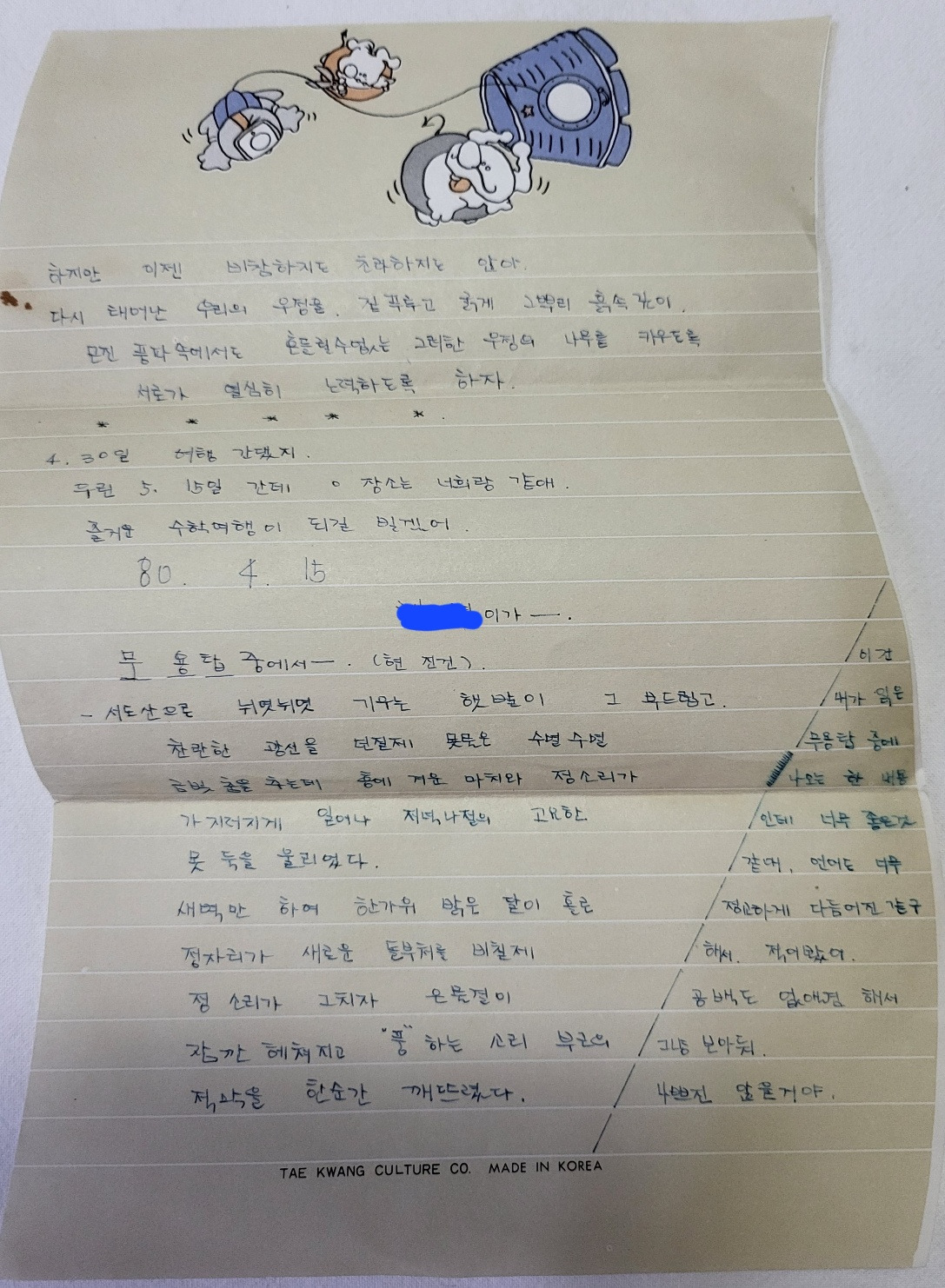 40년이 지난 편지지의 퀄리티가 좋다. 색도 바래지 않았고 종이가 낡지 않았다. 태광제품
