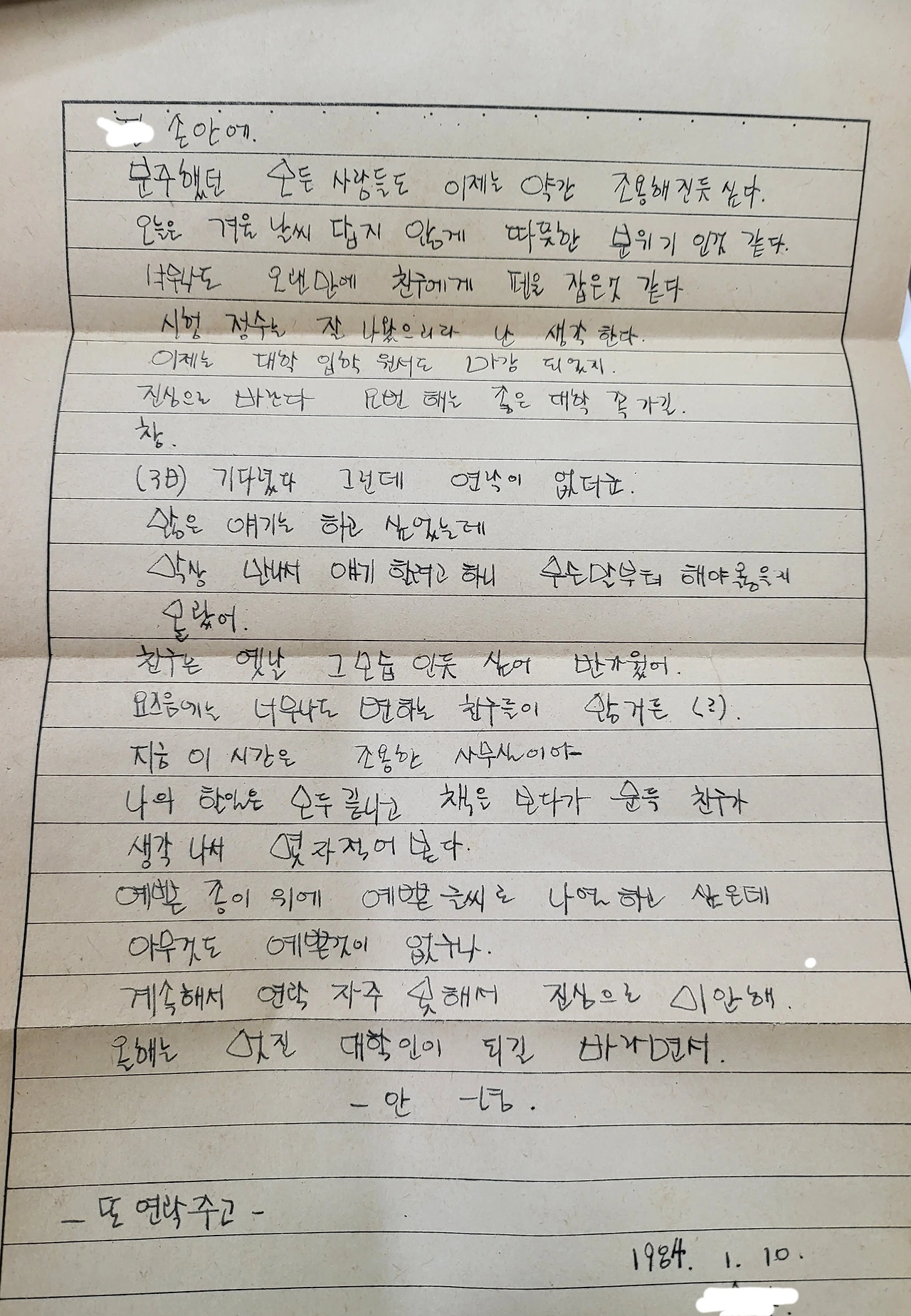 가장 늦게 보낸 84년 편지가 가장 낡아 있다.