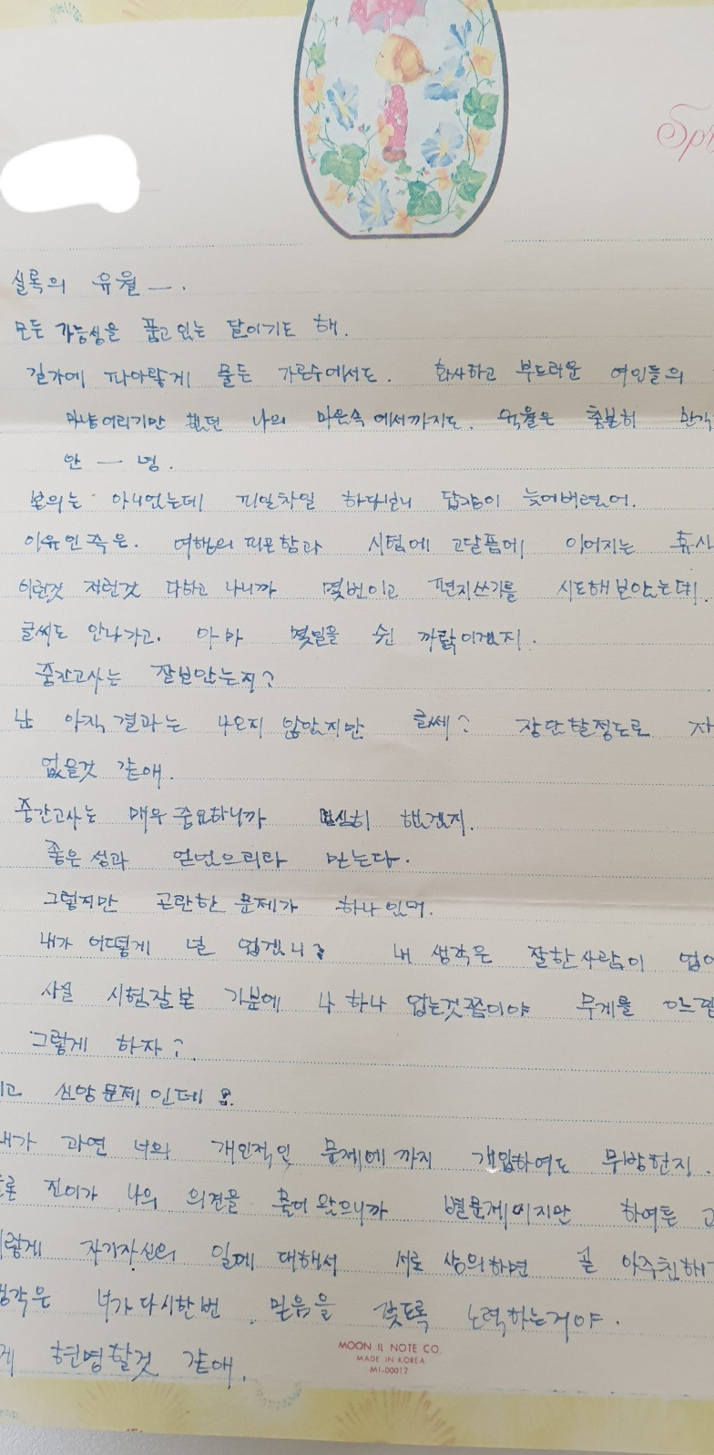 특별한 내용없는 여학생 편지다.