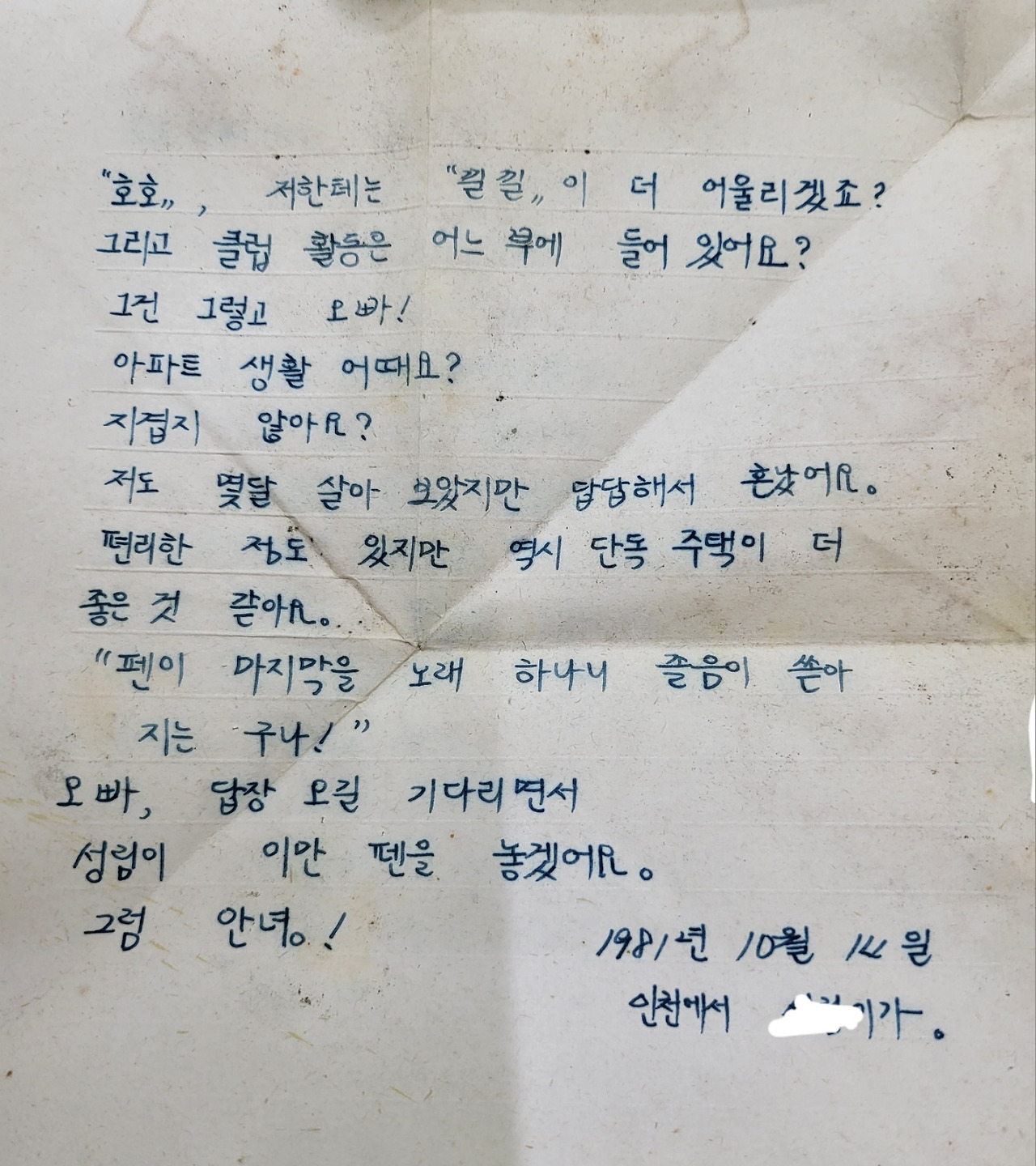 1981년 10월 14일 인천에서 ㅅ ㄹ 이가