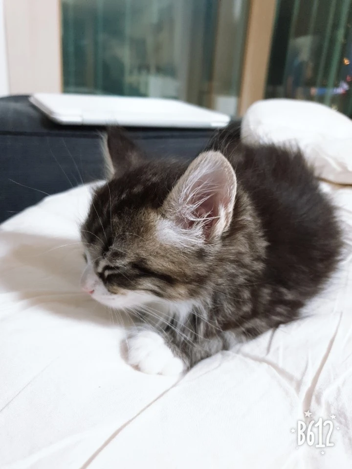 토리와 헤라가 다니는 동물병원이었는데 의사 선생님 말로는 아직 생후 한 달도 될까 말까 한 상태고 영양상태도 안 좋아 보이고, 고양이 헤르페스에 감염되었는데 상태가 안 좋아 보인다며, 아직 너무 어려서 혈액검사해도 의미도 없고 솔직히 한 달이나 버틸지 모르겠다며 안타까운 표정을 지으십니다.
