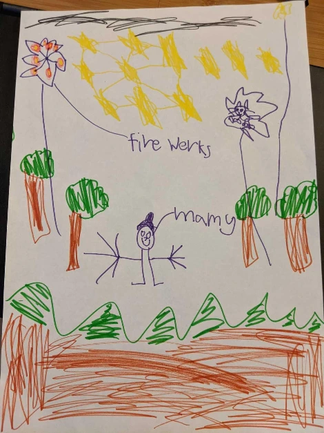몇 년이 지났다. 아이가 생일 선물이라며 학교에서 그린 그림을 가져왔다. 그림 속 나는 활짝 웃으며 정면을 바라보고 있었다. 밤인데 내 머리 위엔 불꽃놀이가 펑펑 터지고, 노란 별이 가득하다. 내 뒤로는 나무가 빽빽하고, 발 밑은 산이다. 나는 가벼운 현기증을 느꼈다. 여긴 꿈속의 그곳이었다. 두려워하는 나를 보고 보름달을 띄워준 것은 혹시 너였을까? 춥고 고독하고 보는 것만으로도 쓰라렸던 그 길에 이제 별이 빛나고, 불꽃놀이가 터지고, 나는 행복해 보인다. 어떤 셀카에서보다 더.