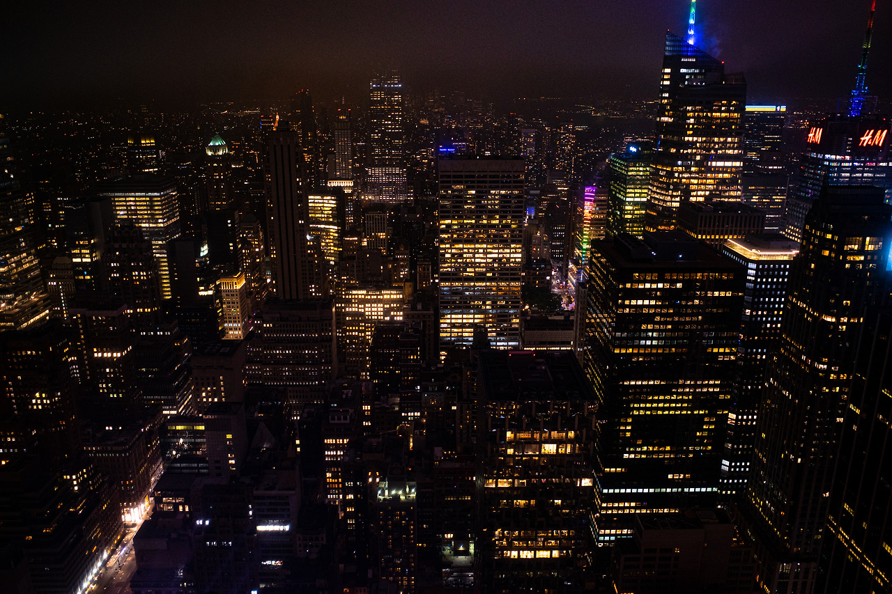 먹고 나서 천천히 뉴욕의 밤거리를 느끼다 보니 어느새 록펠러 센터에 도착했고, Top of the Rock 이라고도 불리는 록펠러 센터의 전망대로 곧장 올라갈 수 있었다. 나를 포함한 많은 사람들이 록펠러센터를 단일건물로만 생각하는데, 사실 록펠러센터는 이 주변에 세워진 건물들과 저층부가 서로 연결되어 있으며, 이 건물단지를 통틀어서 록펠러 센터라 명명한 것이다. 참고로 이곳의 상징과도 같은 이 고층빌딩은 70층에 259m나 되는 빌딩인데 완공시기가 1939년이라고 하니, 그 시절 한국의 상황을 떠올려본다면 이게 가능하기나 한 일인가 싶을 정도이다. 각종 영화에서도 심심찮게 등장하는 록펠러 센터는 1987년에 미국의 역사기념물로 지정되기도 했다.