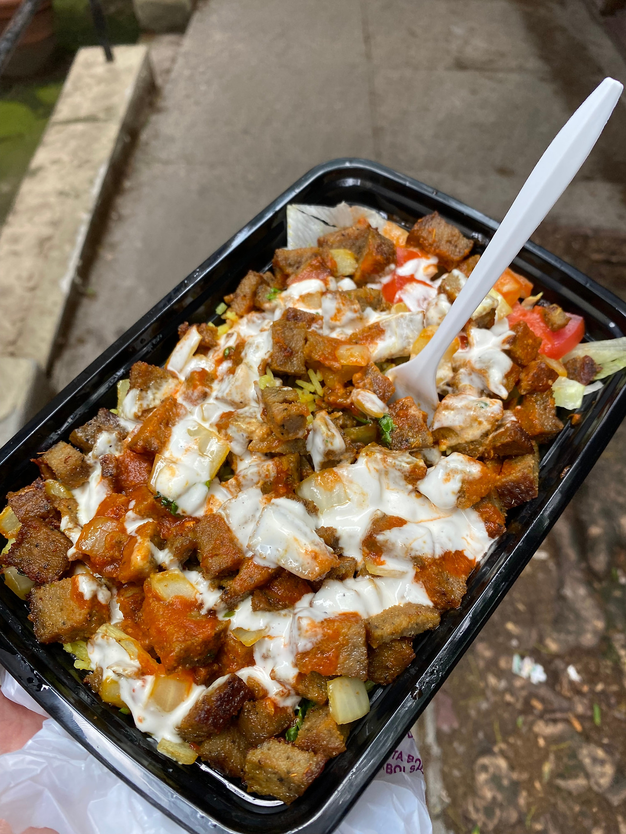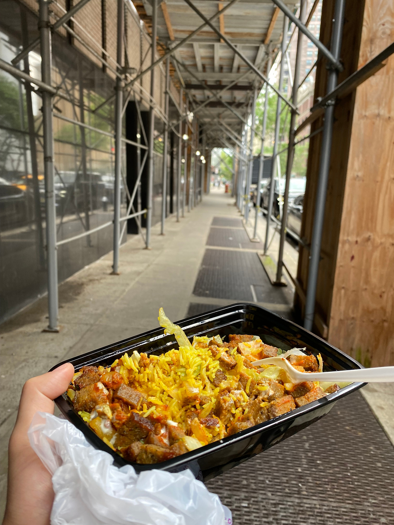 미술관을 나오고 나서는 하늘을 보니 비가 오기로 예정되어있음에도 아직은 하늘이 파래서 유람선을 탈 생각이었다. 그런데 웬걸, 유람선 출발시간이 얼마 남지 않은 상황에서 배가 고픈 것이다. 금강산도 식후경이라는데, 뉴욕이라고 다르겠는가? 때마침 가는 길에 인도음식을 파는 푸드트럭이 하나 있길래 Lamb with rice 한 그릇을 8달러에 냉큼 집어왔다. 사실 큰 기대는 안 하고 급한 대로 허기를 채우려고 사 먹은 건데 생각보다 맛이 괜찮았다. 원래는 좀 더 일찍 도착해서 어디서 앉아서 먹으려 했지만, 계산해보니 열심히 걸어도 5분 남짓밖에 남질 않아서, 결국 이 녀석을 걸어가면서 쿰척쿰척 먹기 시작했다.