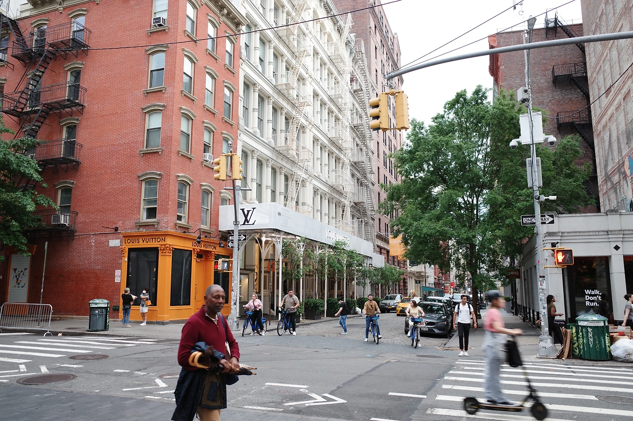 소호지역의 그 빽빽한 건물들은 대부분 명품 브랜드(한국에서 속칭 '에루샤'라고 하는 것들은 당연히 포함) 매장들이었다. 흡사 이탈리아에 갔을 때 본 밀라노 명품거리인 몬테 나폴레오네를 보는듯한 느낌이었다. 쇼핑이나 패션에 관심이 많은 사람들에게는 이만한 곳이 없겠다는 생각이 든다. 명품뿐만 아니라 대중들도 쉽게 접할 수 있는 나이키, 아디다스 등등의 스포츠 브랜드들도 입점해 있다. 그렇지만 지역이 뉴욕 소호인지라 스포츠 매장들 조차 시그니쳐 스토어의 포스를 풀풀 풍긴다.
