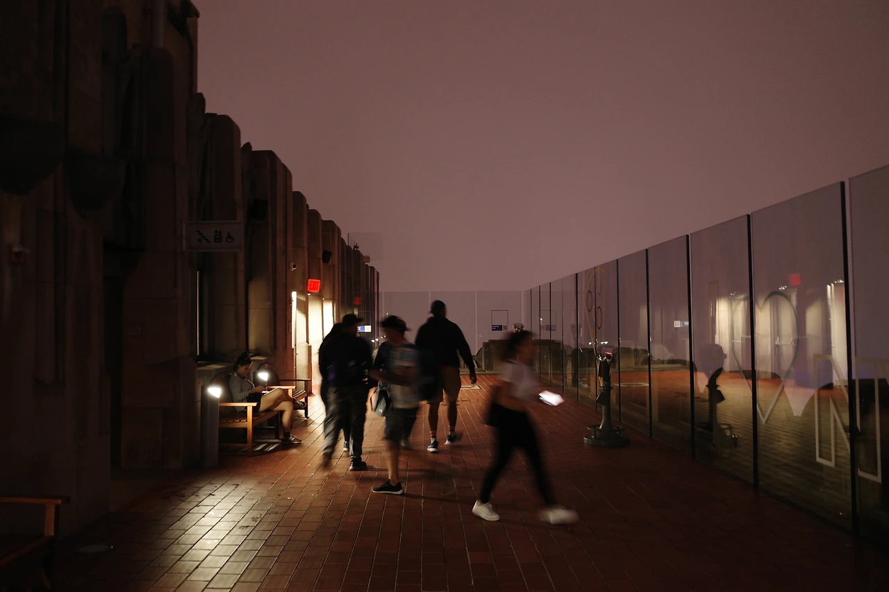 록펠러 센터의 전망대는 총 3개 층으로 이루어져 있으며, 1층에는 난간 부근에 안전 목적상 유리벽이 띄엄띄엄 세워져 있다. 비가 오지는 않았지만 여전히 상층부에는 안개와 비의 중간쯤 되는 녀석이 계속해서 나에게 전신 미스트를 뿌리고 있었다. 이 때문에 오히려 전망대 1층의 뷰가 3층의 뷰보다 훨씬 훌륭했다.