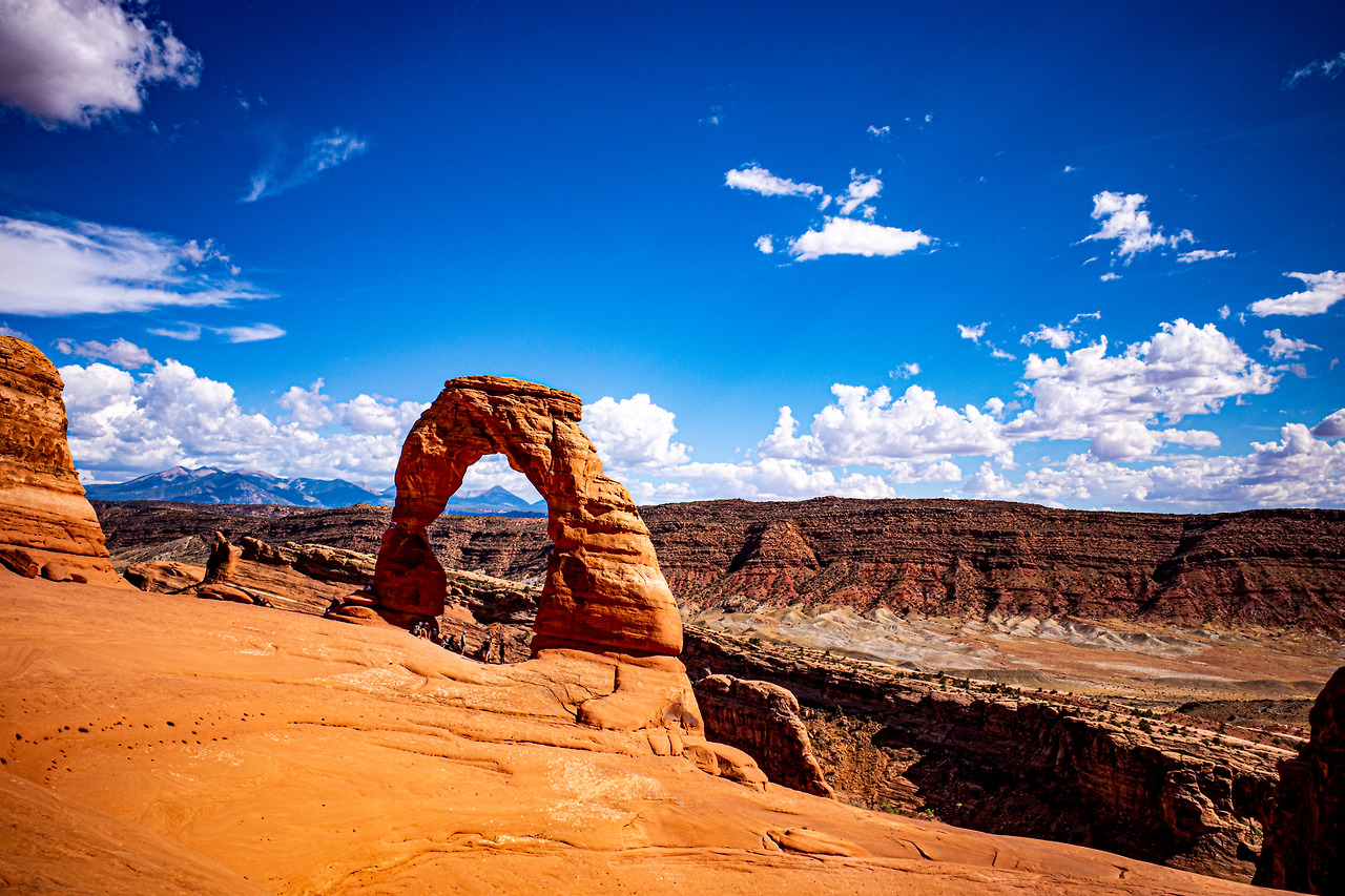 기대가 컸고, 오는 길이 힘들어서 그랬을까? 기대한 만큼의 가슴 벅찬 곳은 아니었다. 다만 보통 저지대에 위치한 다른 아치들과는 달리, 높은 언덕 꼭대기에 혼자서 우뚝 솟아오른 아치라는 게 꽤나 특이하긴 했다. 아치 너머로 보이는 아치스 국립공원의 풍경이 파란 하늘과 대조를 이루며 장관을 연출했다.
