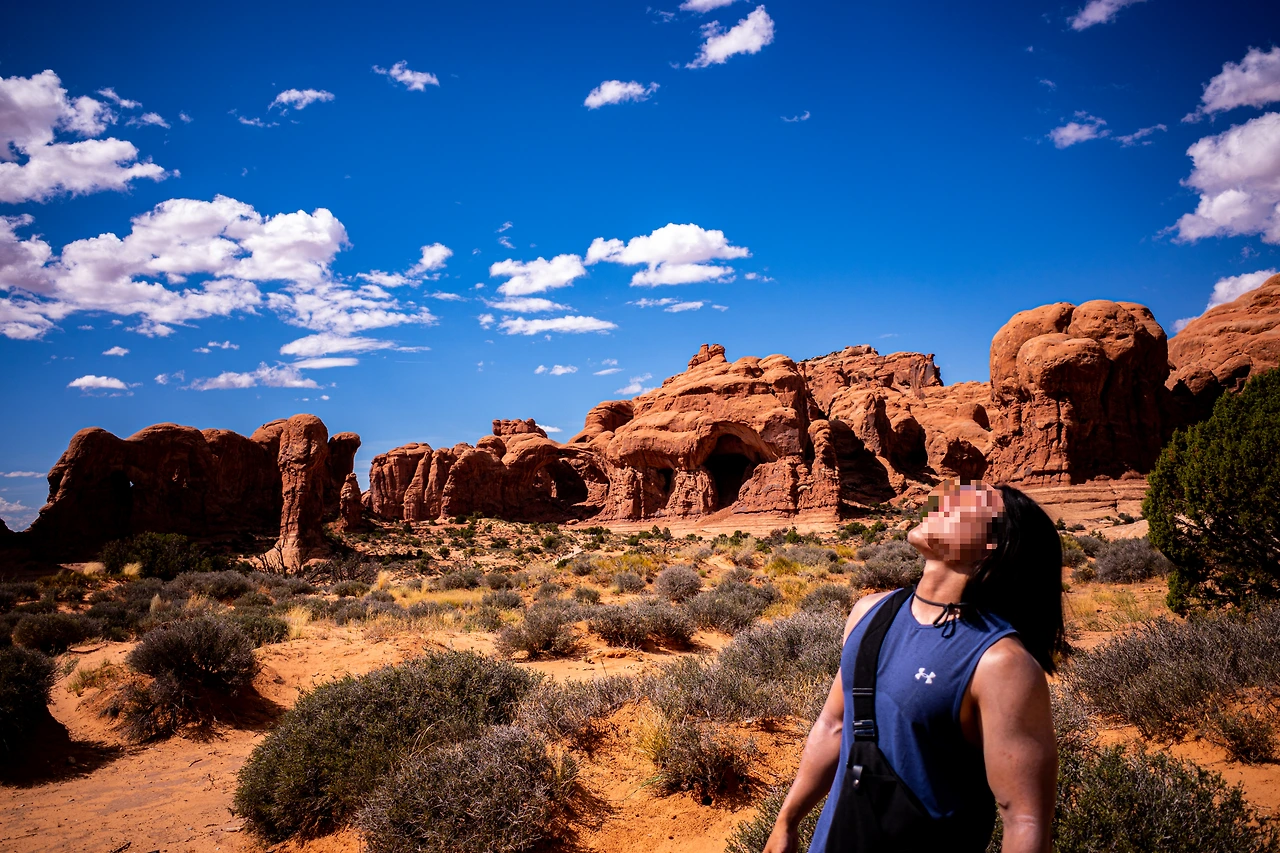 이 중에서는 Garden of eden, Windows, Double arch, Delicate arch를 가보았다. Devil's garden은 왕복 3시간이 걸리는 트레일을 걸어야 하는 코스라서 사막의 여름 아래서 차마 가볼 엄두가 나지 않았다. 때는 8월이라 상당히 햇빛이 강했고, 사막이다 보니 눈, 코, 입이 빠르게 건조해지며 금세 따가워졌다.