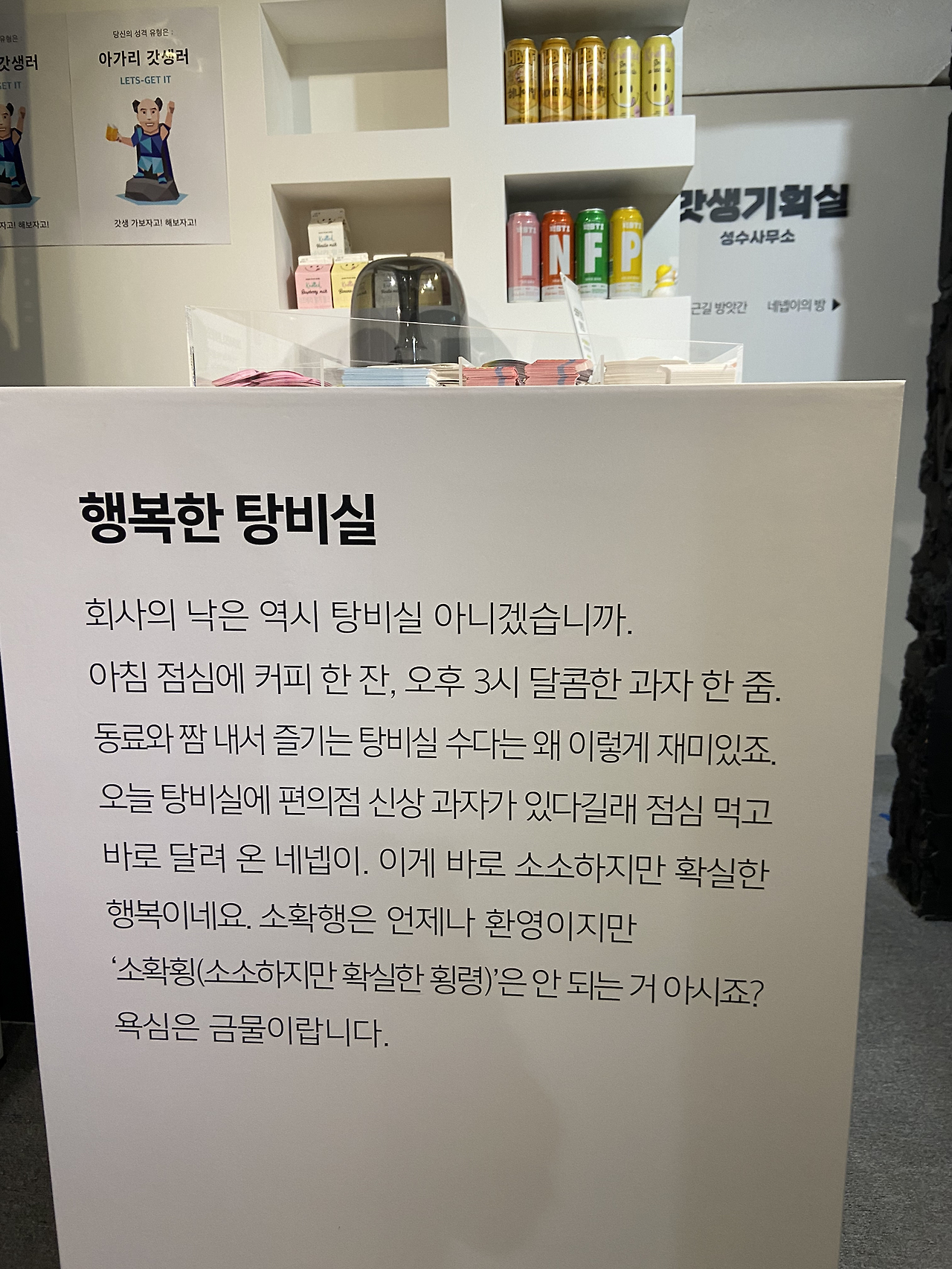 외부 테라스 (넵리단길)에서는 인스타 이벤트로 뽑기를 진행했다. 사은품 + 오늘의 운세 (+ 편의점 쿠폰)이 들어있다