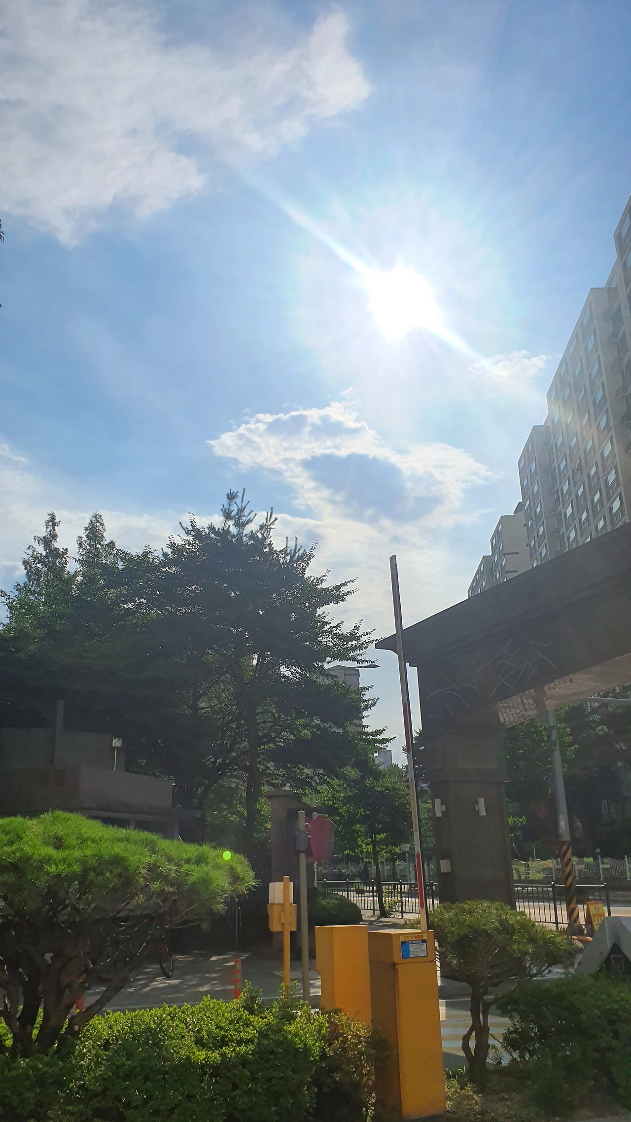이열치열 두 번째 나이트 끝나고 4시간 수면 유도제 먹고 짧은 숙면뒤 일어났다. 날씨가 너무 더웠다. 운동복으로 갈아입고 틀어진 돋보기 같은 안경을 들고 아파트 입구로 나섰다. 내리쬐는 해는 무척이나 뜨거웠다.