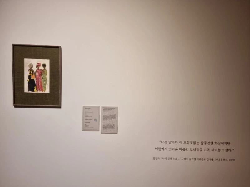 여인의 초상으로 유명한 천경자 화백은 꽃과 여인으로 많은 그림을 표현하였다. 박경리 선생님의 "천경자를 노래함"에서 '이십 년 넘게 못 만나도 멀어지거나 가까워지지 않았고 대담한 의상에서 허기도 탐욕도 아닌 원색을 느끼며 나른해 보이지만 분명하지 않을 때가 없는 아찔하고 감각적이다'라고 표현하였는데 "킨샤사 공항"의 세 여인을 보면서 화가의 세련된 화풍과 자유함을 느낄 수 있었다.