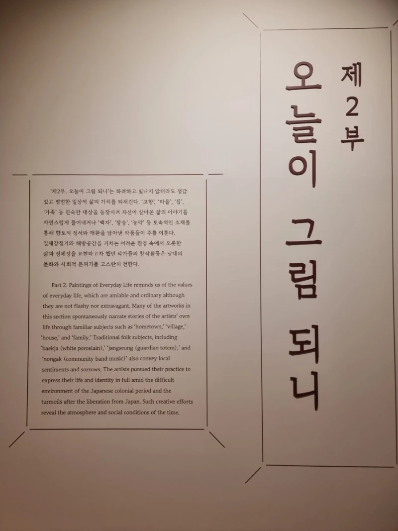 입구에서 들어서니 김기창 화백의 투우가 먼저 눈에 들어왔다. 어린 시절, 시골에서 소를 많이 보고 자라서인지 왠지 친근하게 느껴졌는데 채색을 하지 않고 종이에 먹만으로 강한 생명력의 소를 그릴 수 있다는 것에 감탄하였다.