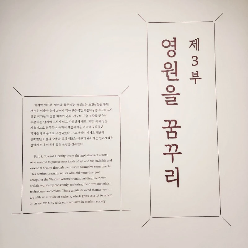 작년 초겨울 여기저기 떨어진 낙엽이 바람을 따라 거리를 메우던 날, 국립현대미술관을 비롯하여 대구 미술관, 전남 도립미술관의 기증 컬렉션 중 60점을 "이건희 컬렉션 특별전 : 영원한 유산"으로 명명하여 내가 사는 지역에서 열린다는 소식을 듣고 나는 도립 미술관을 찾았다.