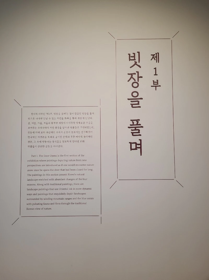 집에서 멀지 않은 곳이었지만 날씨가 쌀쌀하여 차를 가지고 미술관을 찾은 날은 평일이라 그런지 한산하였다. 전시회가 열리는 3층에 이르자 사람들이 드문드문 작품을 관람 중이었고 함께 온듯한 사람들이 무리 지어 가끔 들어오기도 하였는데 나는 사진을 찍고 싶었지만 작가의 혼이 서려있는 작품을 보며 고요함을 깨트리기 싫어 조용히 하나씩 응시하며 둘러보기로 하였다.
