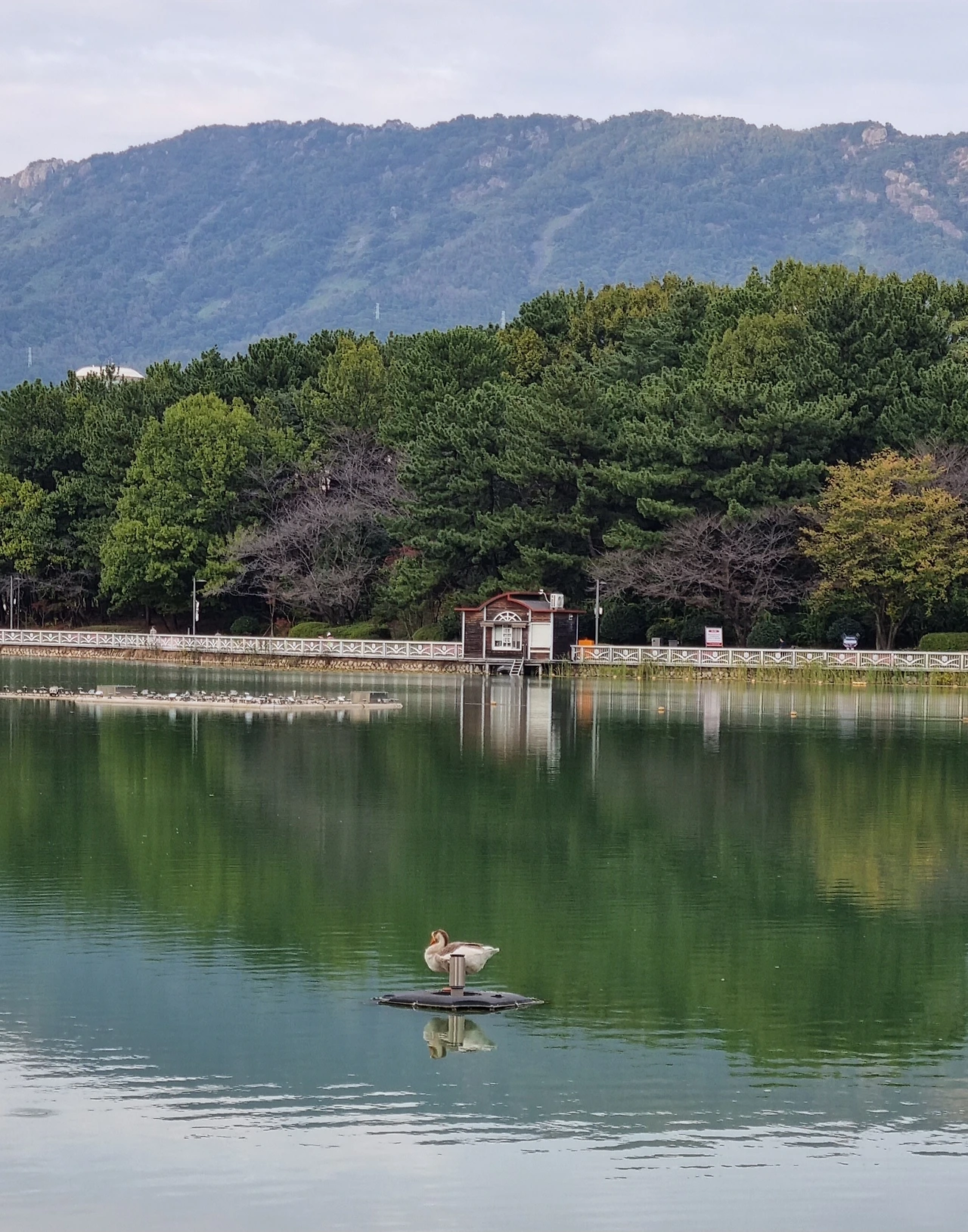 너무 빨리 헤어져 이름조차 모르는 그녀처럼 호수에서 놀고 있는 잉어 떼를 물끄러미 바라보는데 생각처럼 말이 빨리 나오지 않아 몇 마디 나누어보지 못하였지만 이렇게라도 영어로 말해본 게 어디냐며 나는