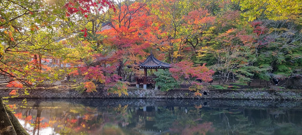 우리는 더 늦기 전에 저수지를 보기 위하여 걸음을 옮겼다. 절 밖으로 나오니 빨갛게 물든 단풍나무 한그루가 눈에 띄는데 아름다운 풍광을 놓칠세라 사진을 찍는데 여념 없는 사람들 틈바구니에서 나무를 바라보다 나도 사진 하나를 찍었다.