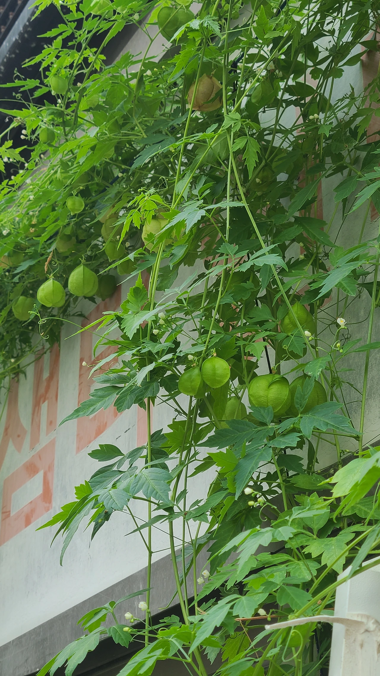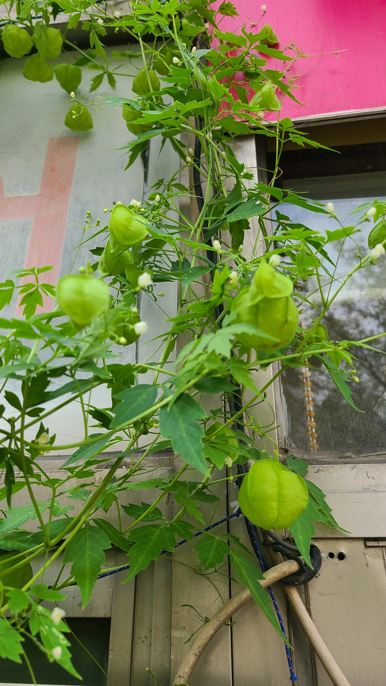 하지만 도림초등학교 주변은 아직 개발되지 않은 오래된 주택들이 모여있는 정겨운 마을이다. 재개발을 기다리는 곳이라 이런 풍경을 언제까지 볼 수 있을까 생각해 본다. 이웃사촌이라 부르지 않던가. 옆집에 누가 사는지, 마을에 일어난 일들을 다 알고 마음을 나누던 사람 사는 정겨움이 있을 것 같은 그런 곳이다. 동네 골목길을 걷다가 담장 옆 화분에 심어진 풍선초가 눈에 띄었다. 덩굴식물인 풍선초는 전봇대를 휘휘 감고 뾰족한 대문 끝을 타고 위로 오르고 있었다.