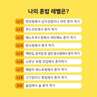 한때 혼밥 레벨에 관한 짤이 돌아다닌 적이 있다.