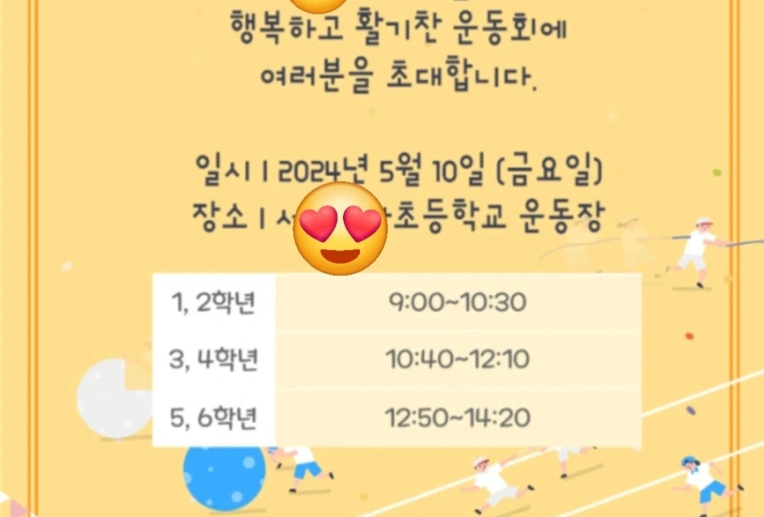 나의 옛 추억에 젖어 들어 아이들 운동회에 거는 기대가 컸나 보다. 학교생활 알림장이 올라오는 앱, 하이클래스에 업데이트된 운동회 일정을 보니...?