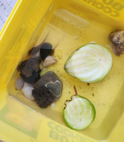 이런 나를 보며 남편은 아이들 없을 때 다 죽었다 하고 풀어주라 했다. 실은 나도 당장 공원으로 가 풀어주고 싶은 마음뿐이었다. 하지만 올챙이들을 위해 작은 돌들로 숨을 곳을 만들어 주고, 바다에서 주어온 소라 껍데기까지 동원해 집을 장식해 준 큰 아이의 마음이 보여 참아보기로 했다.
