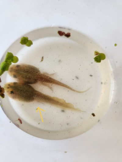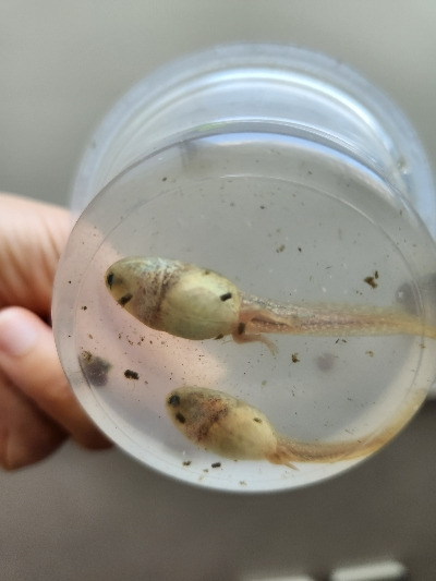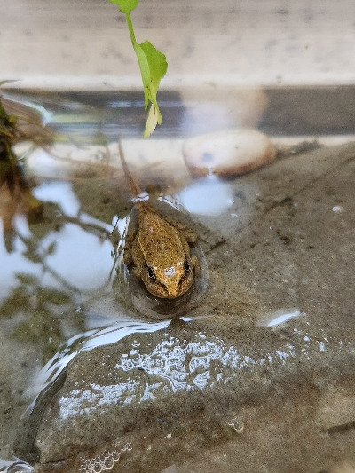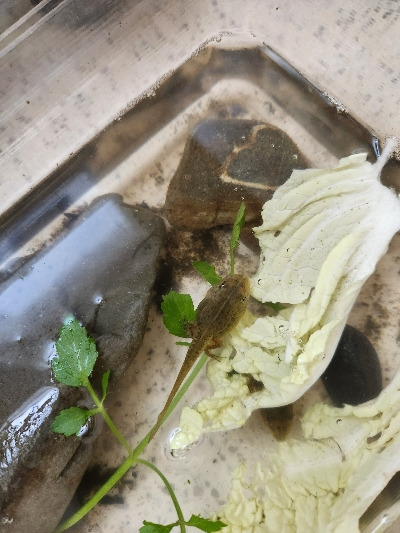 여전히 우리는 아니 큰애와 나만 작은 올챙이 뒷다리를 기다리는 중이다. 그동안 제일 처음 뒷다리가 나온 녀석은 앞다리가 나왔고, 아직 꼬리는 붙어 있지만 곧 개구리가 될 것 같다. 슬슬 얼굴을 물 밖으로 내밀고 있는게 조짐이 보인다.
