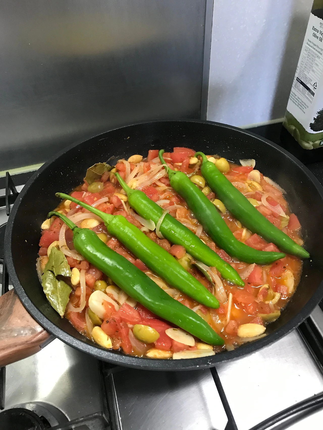 아참, 이번에는 다섯 명이 함께 먹을 음식이라 할머니의 레시피대로 하면 되니 편하네요. 둘이서 먹을 때는 늘 레시피를 반 또는 삼분의 일로 줄여야 했거든요. 양파와 마늘을 기름에 볶다가 아까 썰어둔 토마토를 넣은 뒤에 소금, 월계수 잎, 오레가노, 올리브, 할라피뇨 주스를 함께 넣고 계속 조리해요. 아쉽게도 케이퍼는 넣지 못했지만 놀랍게도 B가 말린 자두를 한 봉지 갖고 있었어요. 알피는 B네 집에 말린 자두가 있을 거라는 기대를 안 했기 때문에 이렇게 물었거든요.
